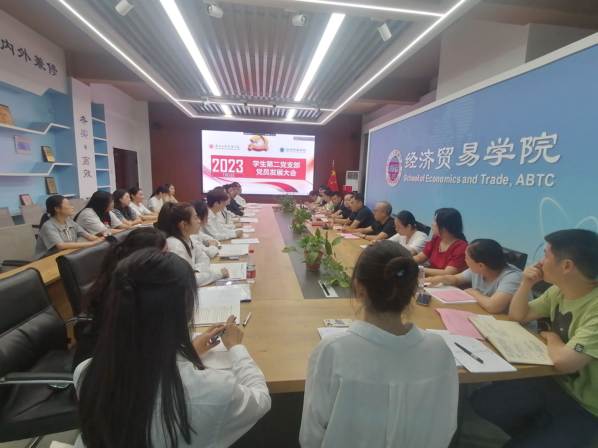 7月5日中午,经济贸易学院学生第一、第二党支部分别在四楼、五楼会议室召开预备党员接收大会。党总支书记边昊到会指导,会议分别由学生第一党支部书记朱清涟和第二党支部书记陈夺主持,学生第一、第二党支部全体正式党员参加会议。