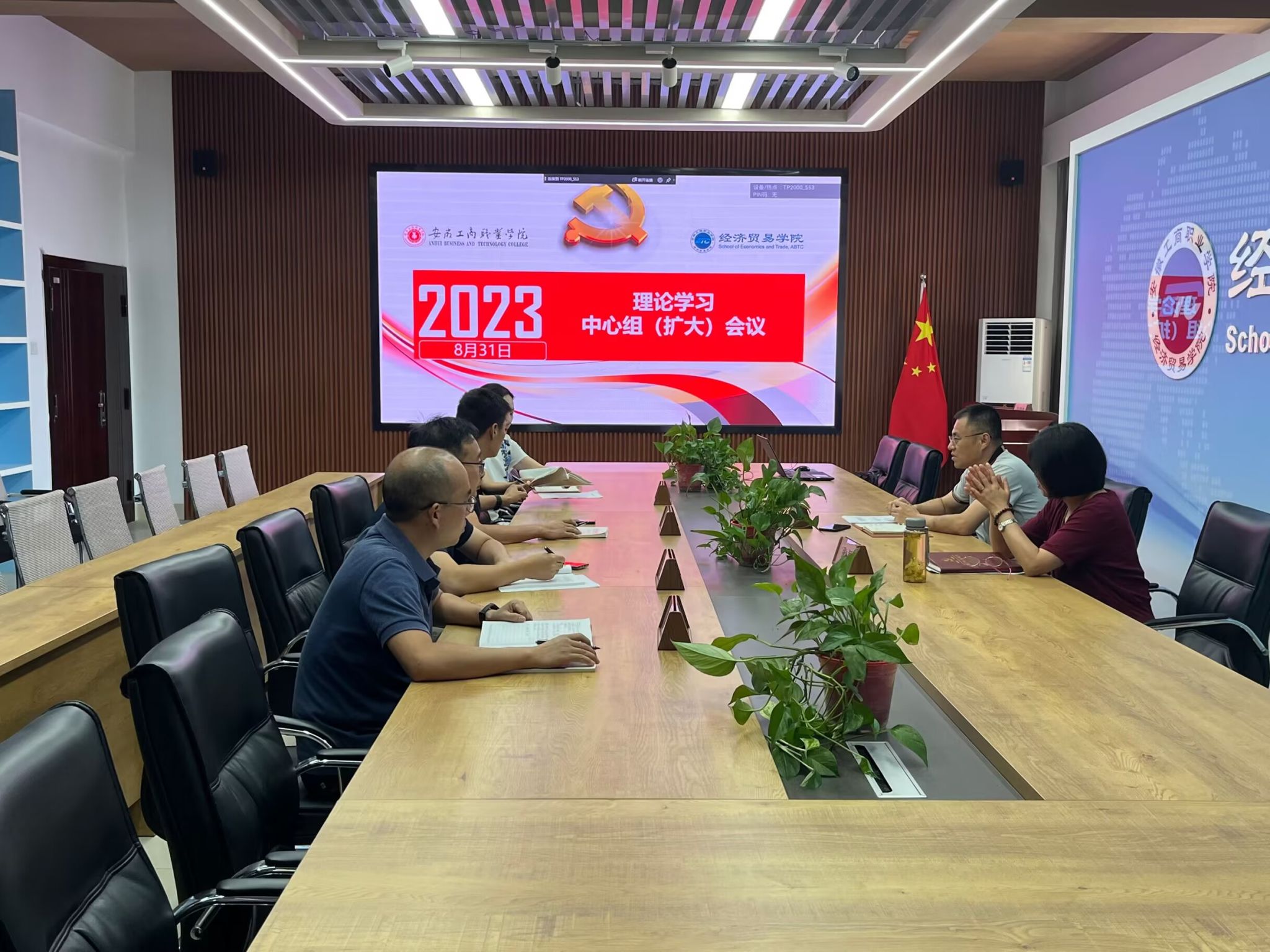 2023年8月31日中午,经济贸易学院在五楼会议室召开二级理论学习中心组学习会议。会议由党总支书记边昊主持,党总支副书记、院长张颖以及全体党总支成员参与学习。