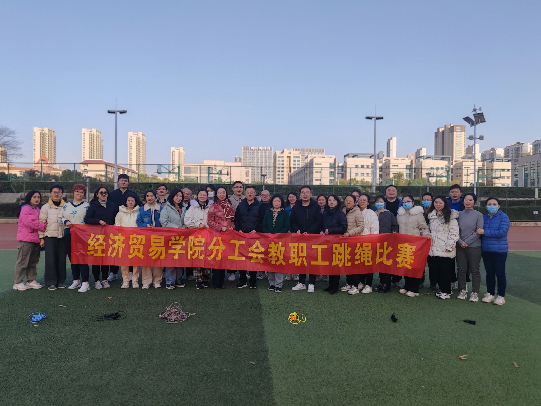 为积极响应校工会号召,丰富学院教职工文化生活,提高教职工身体素质,创建“阳光体育,健康快乐”的学校体育氛围,展现教师良好的精神面貌和自强进取的拼搏精神,12月6日下午,经济贸易学院分工会在足球场开展了教职工跳绳比赛活动,学院全体教职工参加了比赛活动。