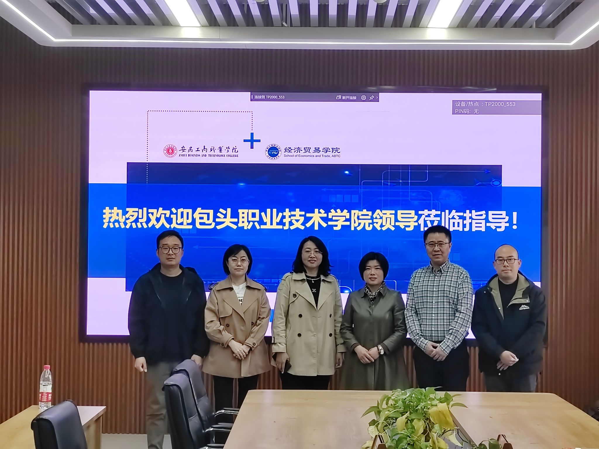 3月21日上午,包头职业技术学院经济贸易管理系主任杨玉珺一行3人来我校经济贸易学院考察交流。经济贸易学院院长张颖、副院长张键等参加了交流活动。