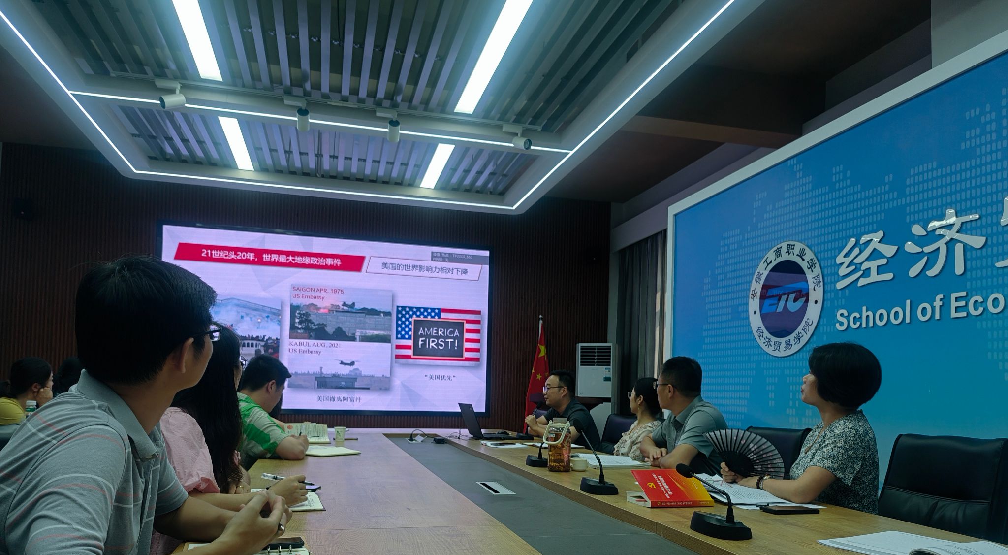 9月4日下午,经济贸易学院在5楼教师能力提升中心召开了安全稳定专题会议,会议由党总支书记边昊主持,学院副院长张键主讲,全体教职工参加。