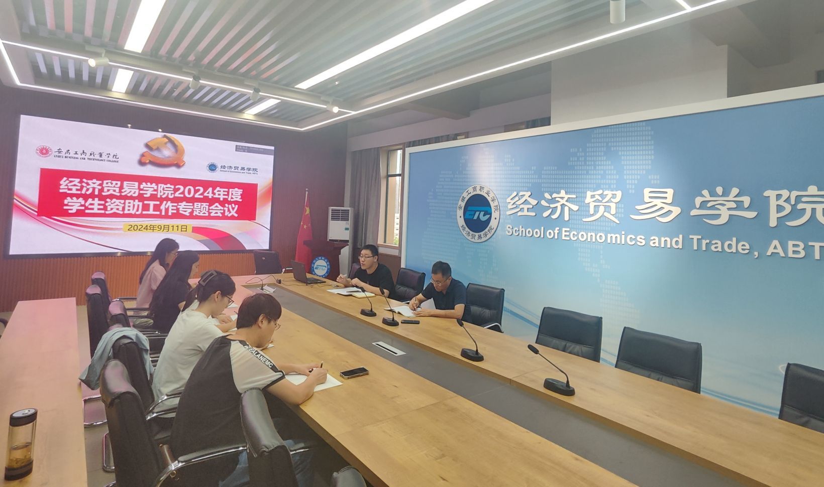 为确保新学期学生资助工作顺利进行,进一步落实好各项资助政策,9月11日下午,经济贸易学院在5楼教师能力提升中心召开2024年度学生资助工作专题会议。全体专兼职辅导员参加会议,会议由学院党总支书记边昊主持。