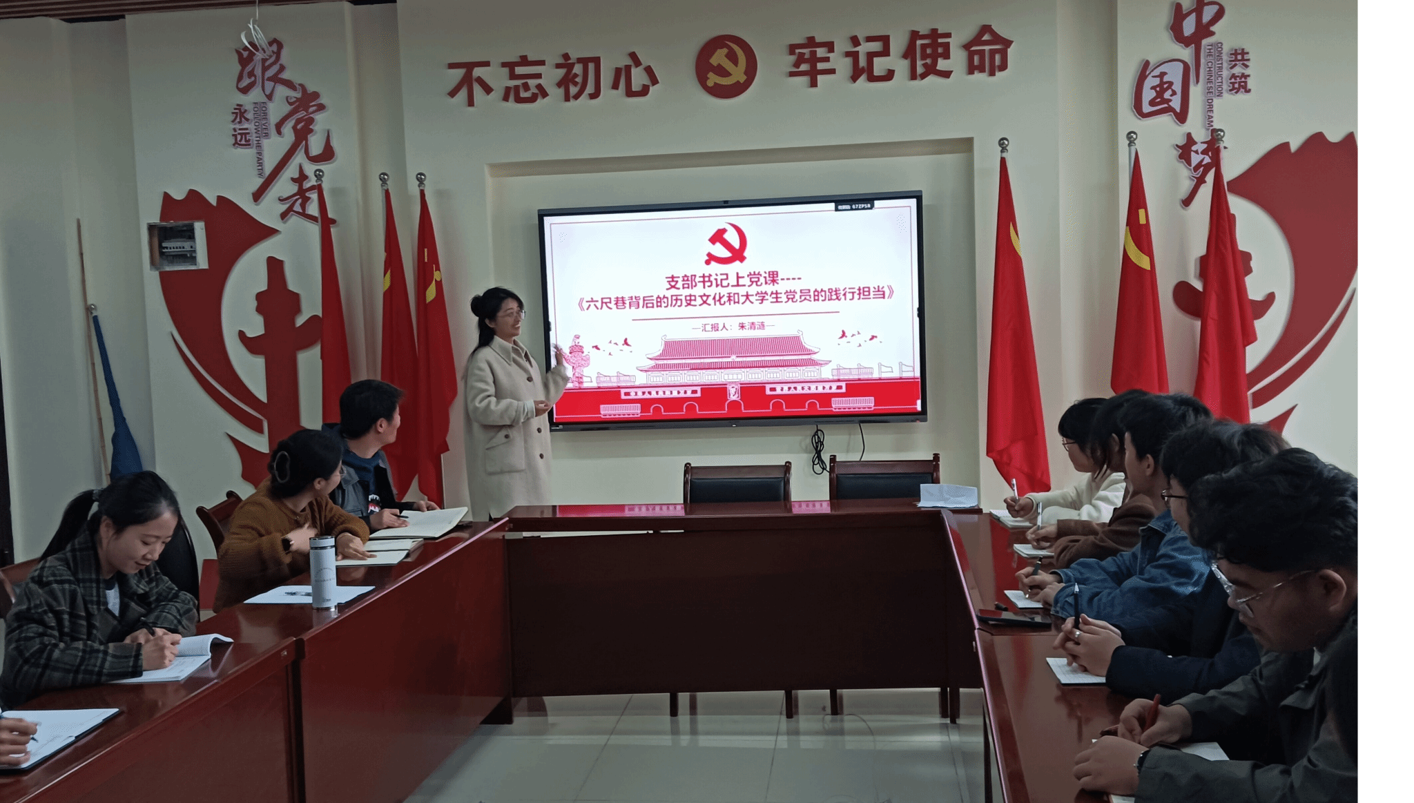 为深入学习贯彻习近平总书记在安徽考察时的重要讲话精神,弘扬中华民族传统美德,锤炼党员党性修养。11月19日下午,经济贸易学院学生党支部在党员活动室开展支部书记上专题党课活动,学生第一支部书记朱清涟讲授专题党课,支部全体党员参加学习。