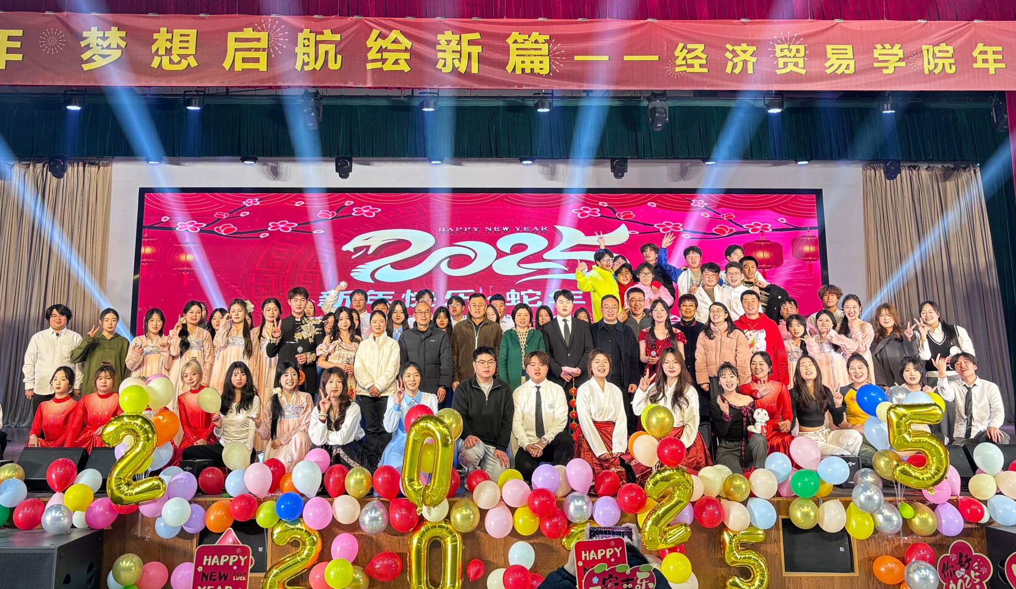 旧岁缱绻去,新岁翩跹来。2025年1月2日,岁月流金迎蛇年 梦想启航绘新篇——经济贸易学院年度表彰暨庆新春联欢晚会在大学生活动中心隆重举行,经济贸易学院院领导、全体辅导员、部分老师及在校生600余人欢聚一堂,共赴一场温暖之约。