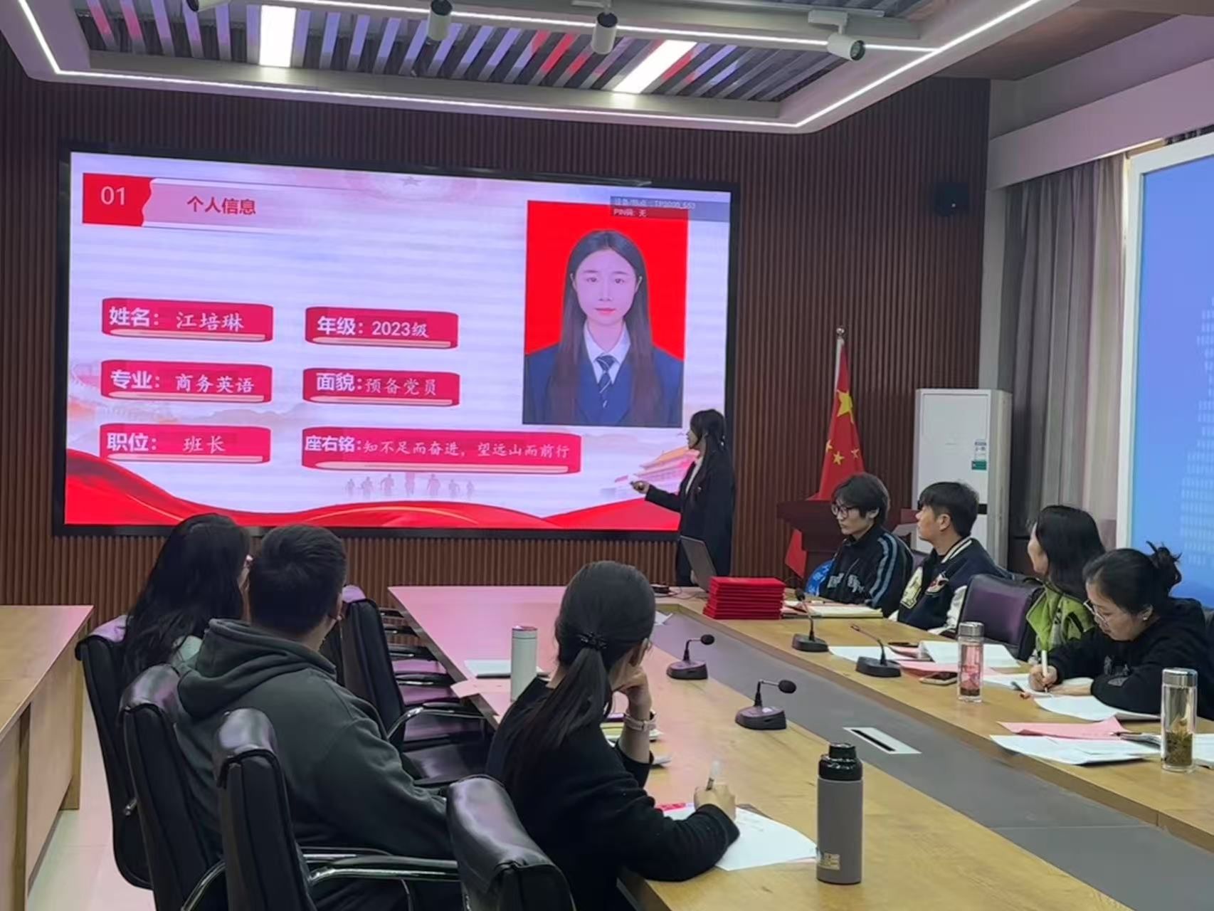 为弘扬榜样力量,激励学子奋进,4月1日中午,经济贸易学院隆重举办2024年度“十佳大学生”评选活动。学院党总支书记边昊、部分总支委员及辅导员代表组成评审团出席现场,共同见证优秀学子的风采展示。