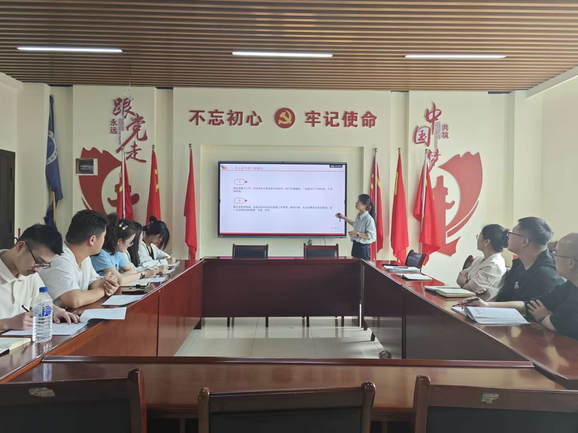 杨玉娇围绕中央八项规定出台背景、具体内容以及重要意义展开讲解,详细解读了“中央八项规定”和“中央八项规定精神”之间的区别与联系。杨玉娇希望党支部成员要锲而不舍深入学习贯彻中央八项规定精神,不断增强纪律意识、规矩意识,把纪律规矩刻印在心,知敬畏、存戒惧、守底线,使铁的纪律真正转化为日常习惯和自觉遵循。
