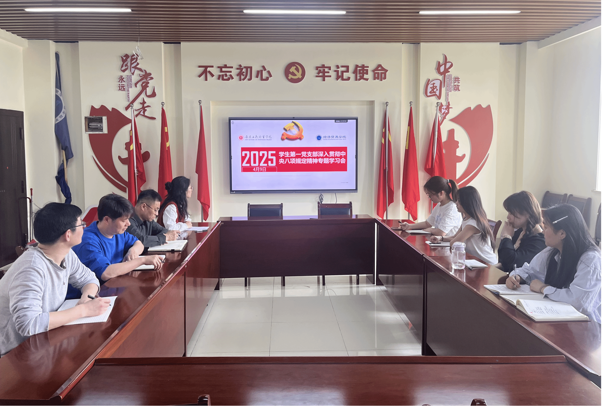 为深入贯彻中央八项规定精神,推动全面从严治党在学生党员群体中落地生根。经济贸易学院学生第一支部于4月9日在党员活动室召开专题学习会,深入学习中央八项规定精神,支部书记朱清涟主持会议,全体党员同志参加学习。