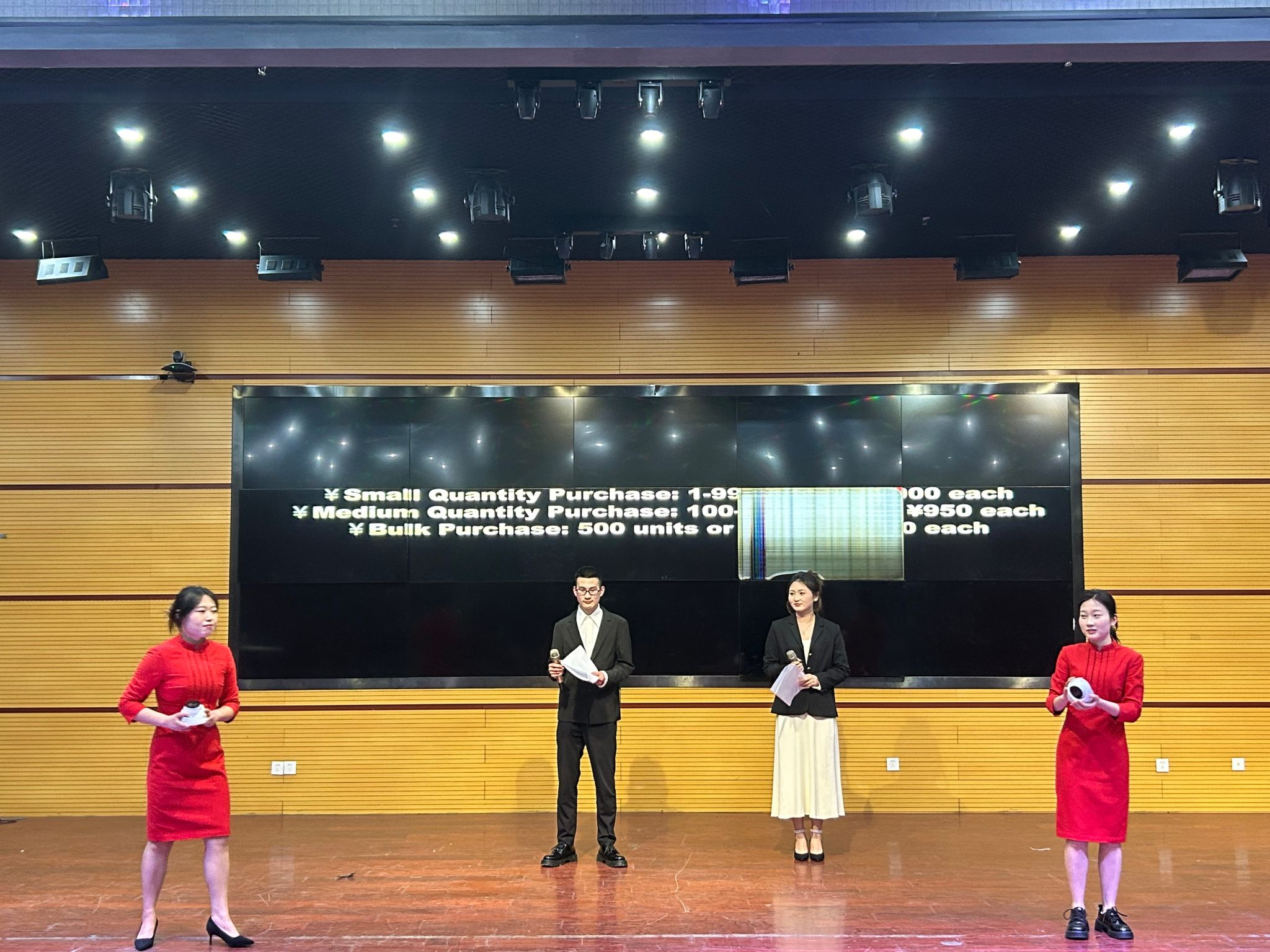 2025年4月2日下午,2024年校技能节第13届国际贸易新产品发布会大赛在学术报告厅成功举办。本次大赛共有5支队伍、37名选手参加大赛。大赛采取全英文方式进行国际贸易新产品推介,参赛的各代表队自行寻找合作厂商提供产品,推介的产品主要有电动牙刷、AI机械键盘、半球网络摄像机、马面裙、智屋AI智能音箱等新颖创新的适销外贸参展商品。每队派出2名英文主讲配以PPT,并辅以现场产品功能展示、舞蹈、情境剧、模特秀等丰富多彩的形式来进行推介。经济贸易学院各班级200余名学生现场观摩了比赛。大赛锻炼和提升了学生的国际市场营销、英语口语、外贸展示、团队合作、创新创业等职业技能。