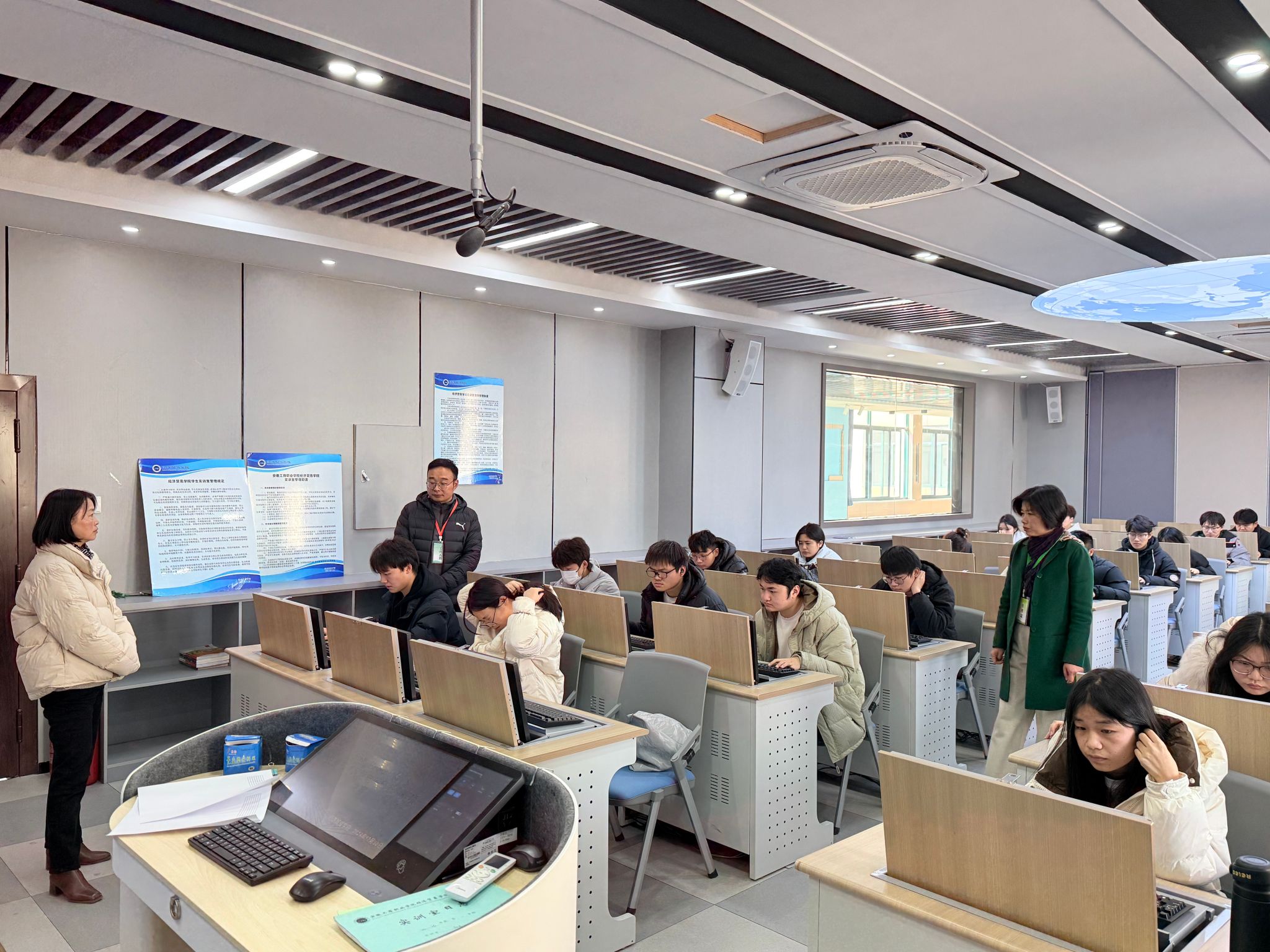 为加强学风建设,形成注重专业技能训练的学习氛围、提高操作技能,2024年12月25日下午,在前期充分动员和周密部署下,经济贸易学院金融教研室在金融实训室和金融科技实训室成功举办2024年度校技能节“智慧金融”赛项。