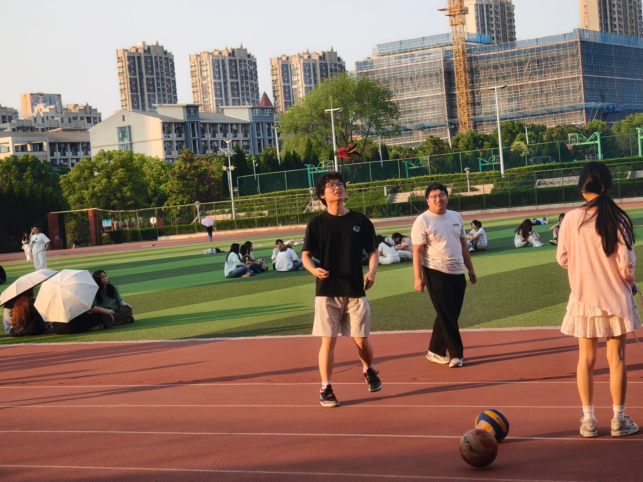 运动会现场,同学们热情高涨。在充满童年回忆的“滚铁环”赛道,同学们专注地引导铁环穿梭前行,每一次成功的操控都引来阵阵喝彩;“同心运球”项目中,队员们分组协作,屏息凝神、步履一致,小心翼翼地将球在拼接形成的凹槽间平稳传递、接力输送至终点;考验平衡与速度的“企鹅跑”让选手们独特的奔跑姿态引得笑声连连;毽子在空中翻飞跳跃,“踢毽子”选手灵巧的身手展现十足功底;蕴含古雅意趣的“投壶”区,大家凝神静气,随着箭矢破空,精准投入壶中的瞬间赢得掌声。现场不时传来阵阵喝彩声。