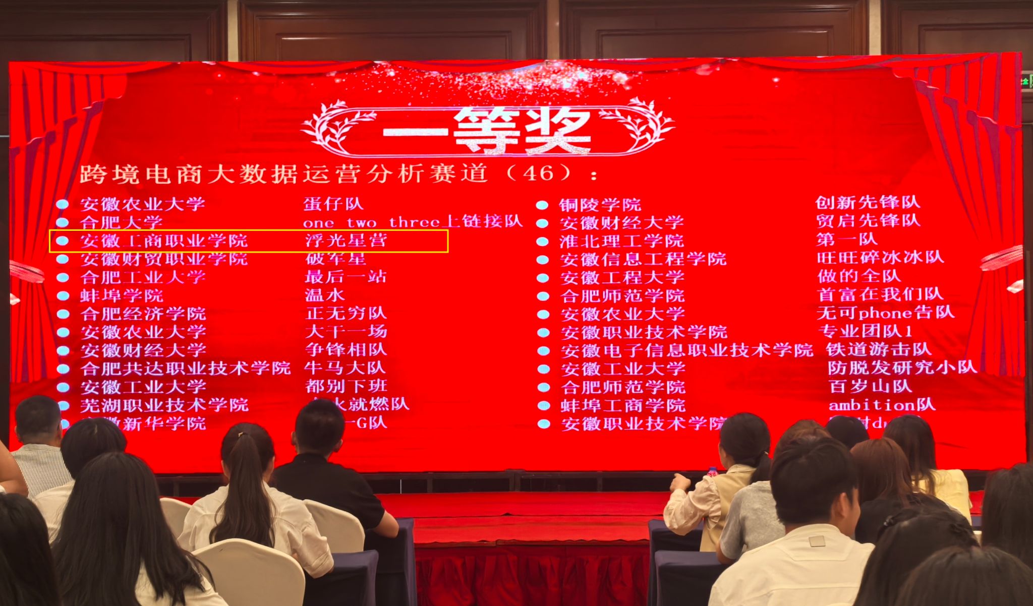 本次大赛,作为安徽省教育厅主办的重要B类赛事,共吸引了来自合肥工业大学、安徽大学、安徽农业大学、安徽财经大学、合肥大学、浙江经济职业技术学院等60余所高校的1568支队伍参赛,涉及参赛学生数8000余名。历经初赛、复赛,共有200支队伍入围现场总决赛,竞争异常激烈。我校经济贸易学院代表队与众多本科院校同台竞技,不仅展现了高职院校学生的风采,更在跨境电商大数据分析赛道中荣获一等奖(第三名),且为该赛道中高职院校的第一名,彰显了学院跨境电商高水平专业群建设的丰硕成果和在国际贸易领域人才培养的深厚底蕴。