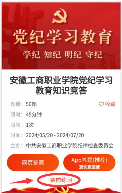 2.手机端扫描二维码,直接选择“赛前练习”,即可进入练习模式进行学习。