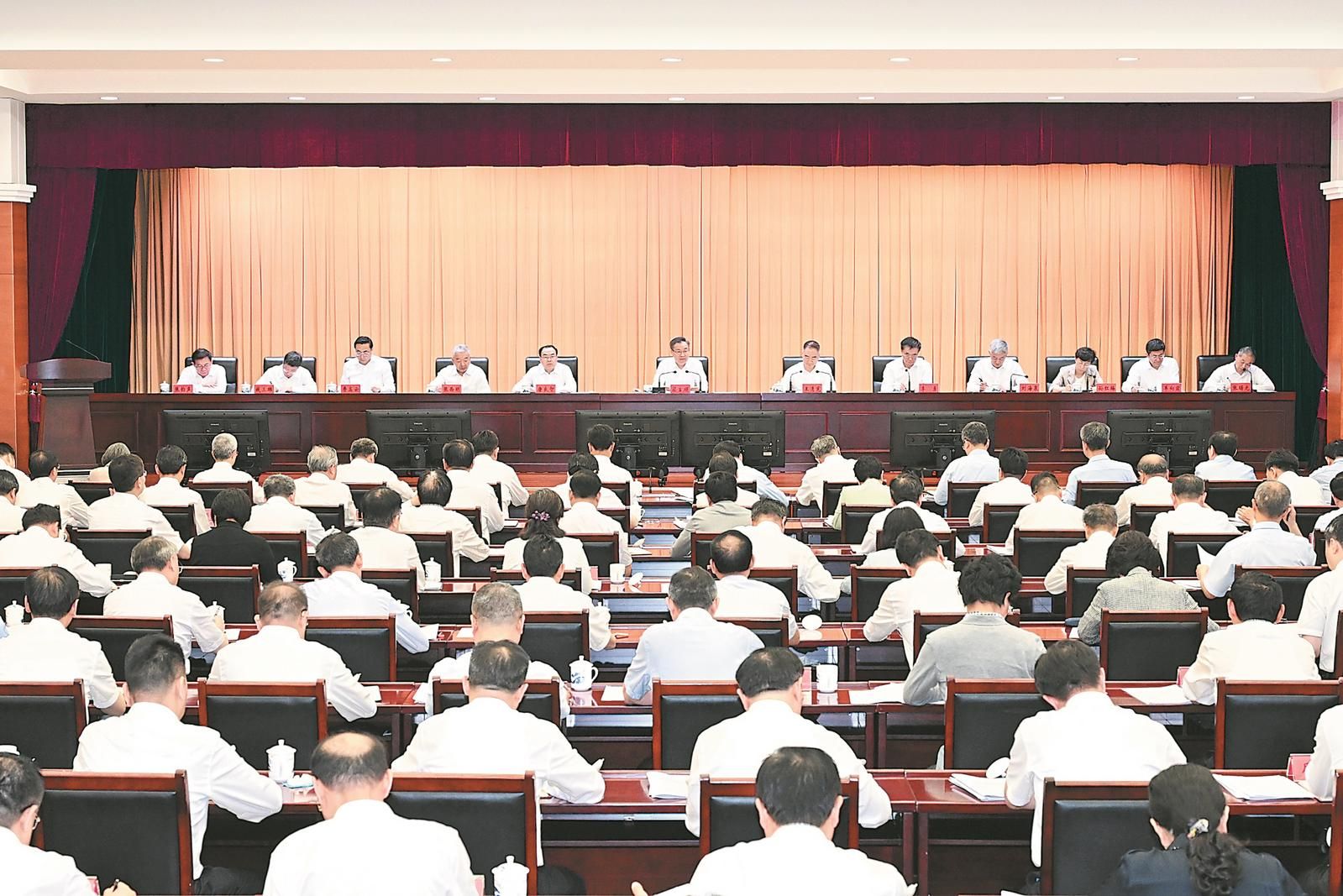 五月二十一日上午,全省深入贯彻中央八项规定精神学习教育学查改一体推进大会在合肥召开。省委书记梁言顺出席并讲话。记者 杨竹 许昊 摄