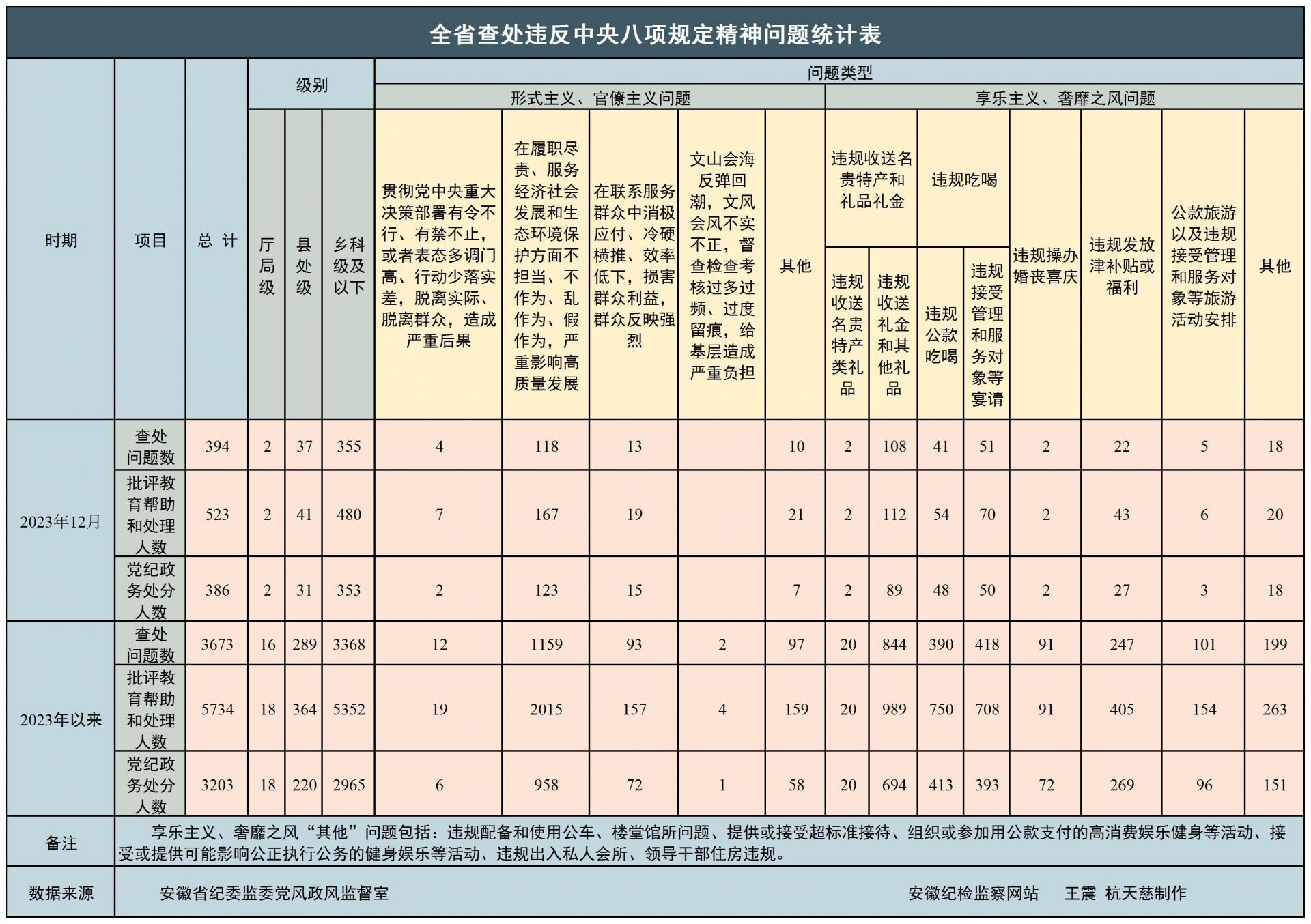2023年全省查处违反中央八项规定精神问题统计指标表