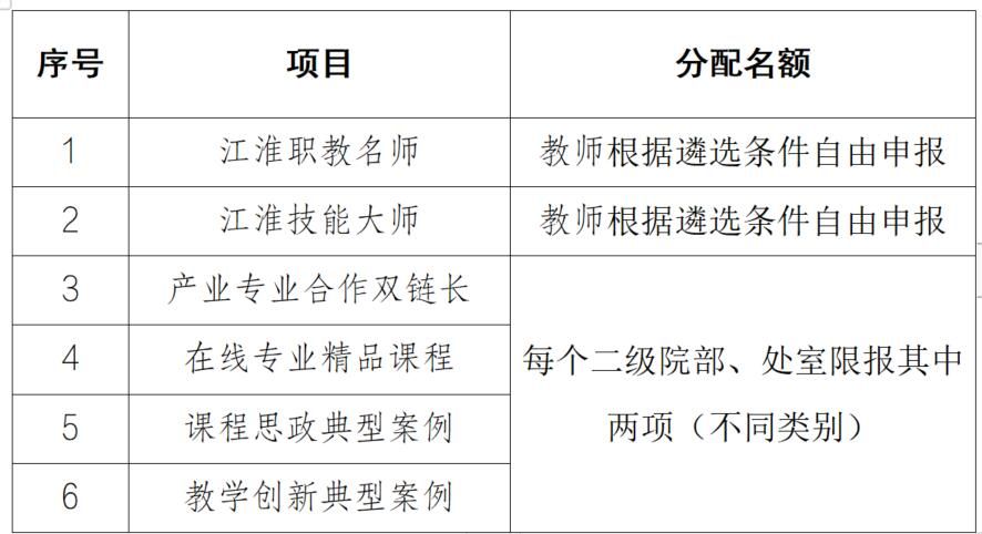 1.江淮职教名师。要求在近5年已获得省级教学名师的教师中推选。已获得往届国家江淮职教名师或省级江淮职教名师的教师不再参加遴选。其中,学校负责人占比不超过总限额的20%。