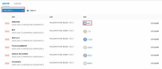 2.进入界面后会显示学生本学期要完成的所有评教任务,点击老师姓名即可进入任务进行评价