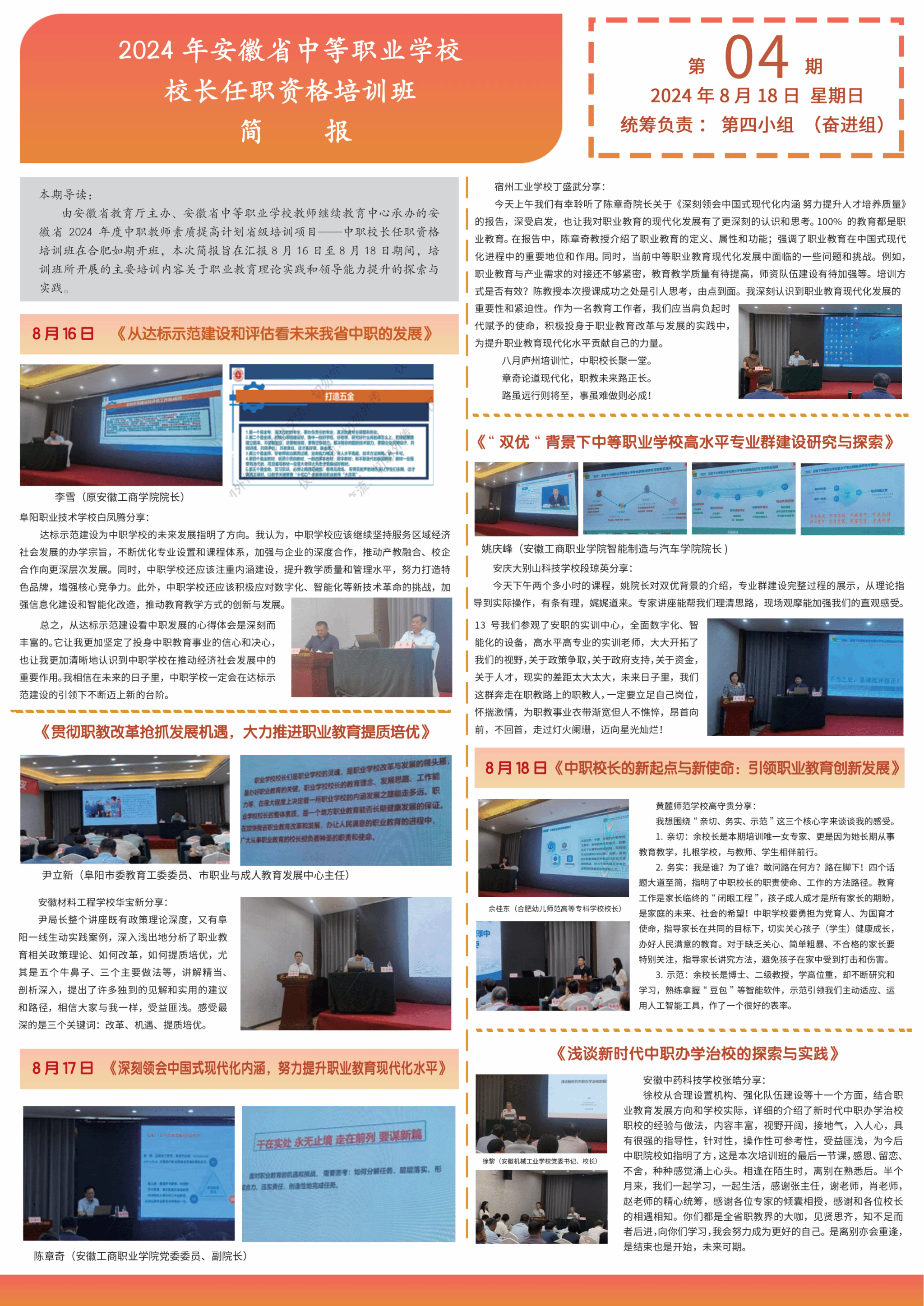 2024年安徽省2024年中等职业学校校长任职资格培训班简报第四期