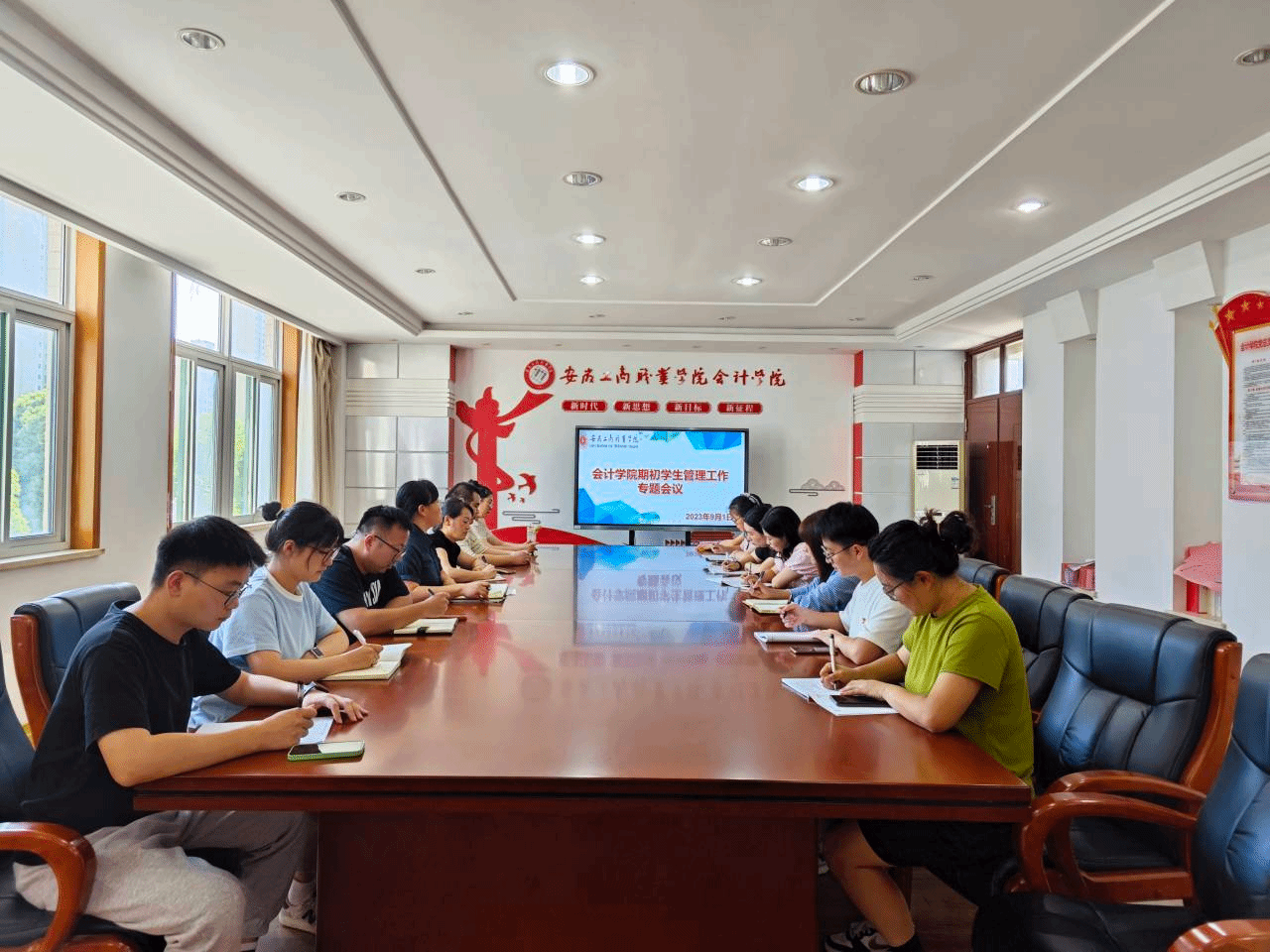 为持续提高会计学院学生管理工作质量,确保新学期各项工作快速步入正轨。2023年9月1日下午,会计学院于明德楼二楼党建会议室召开新学期学生管理工作专题会议。会议由党总支书记赵艳主持,学生科工作人员和全体专职辅导员参加了会议。