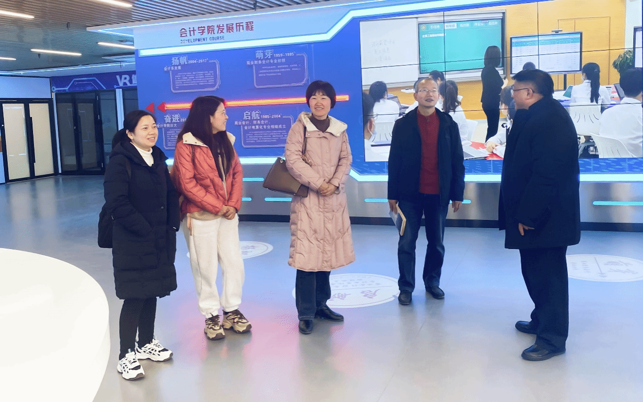 交流会上,高克智对周院长一行的到来表示热烈欢迎。先是观看了我校宣传片,接着费玄淑介绍了我院会计学院的基本情况、教学改革、教师教学能力比赛、科研成果以及学生技能大赛等。随后两院教师就未来专业发展、专业建设、课程设置等展开了充分交流。最后高克智带领周院长一行参观了会计学院的智慧财务创新中心。