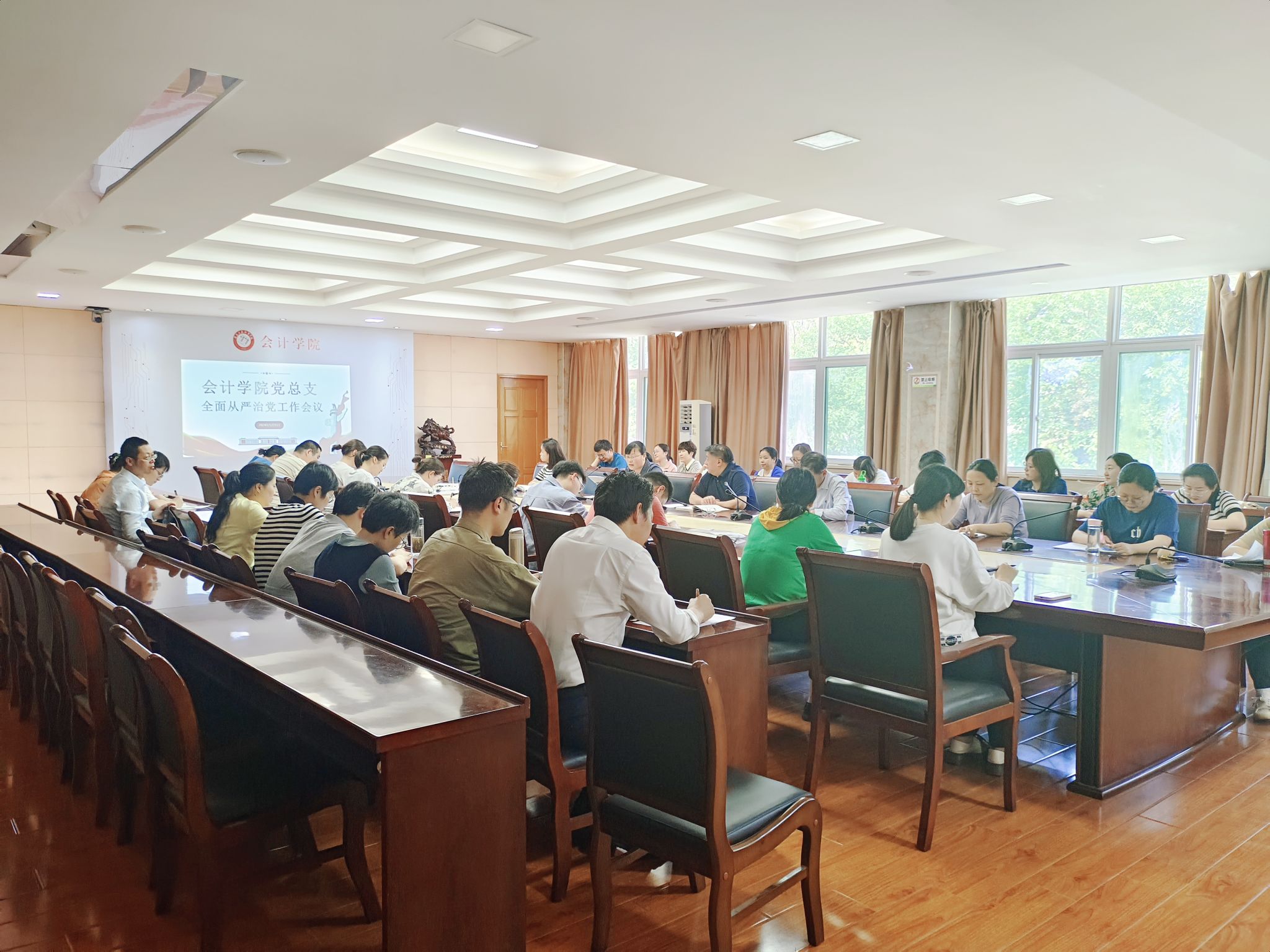 5月15日下午,会计学院党总支在明德楼二号会议室召开2024年全面从严治党专题警示教育会。会议由党总支书记赵艳主持,会计学院全体教师党员参会。