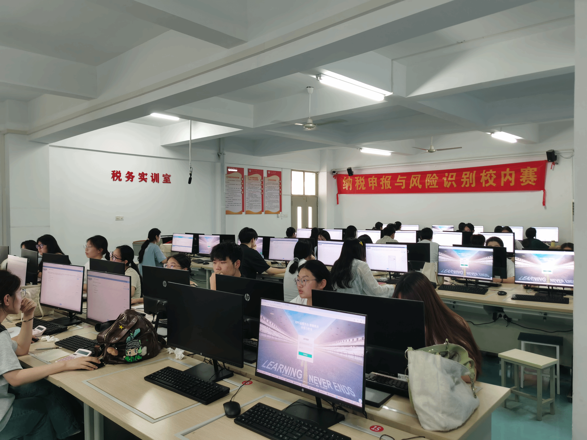 2025年6月18日下午,安徽工商职业学院第十一届技能节“纳税申报”赛项决赛在双凤校区KJ501税务实训室顺利举行。