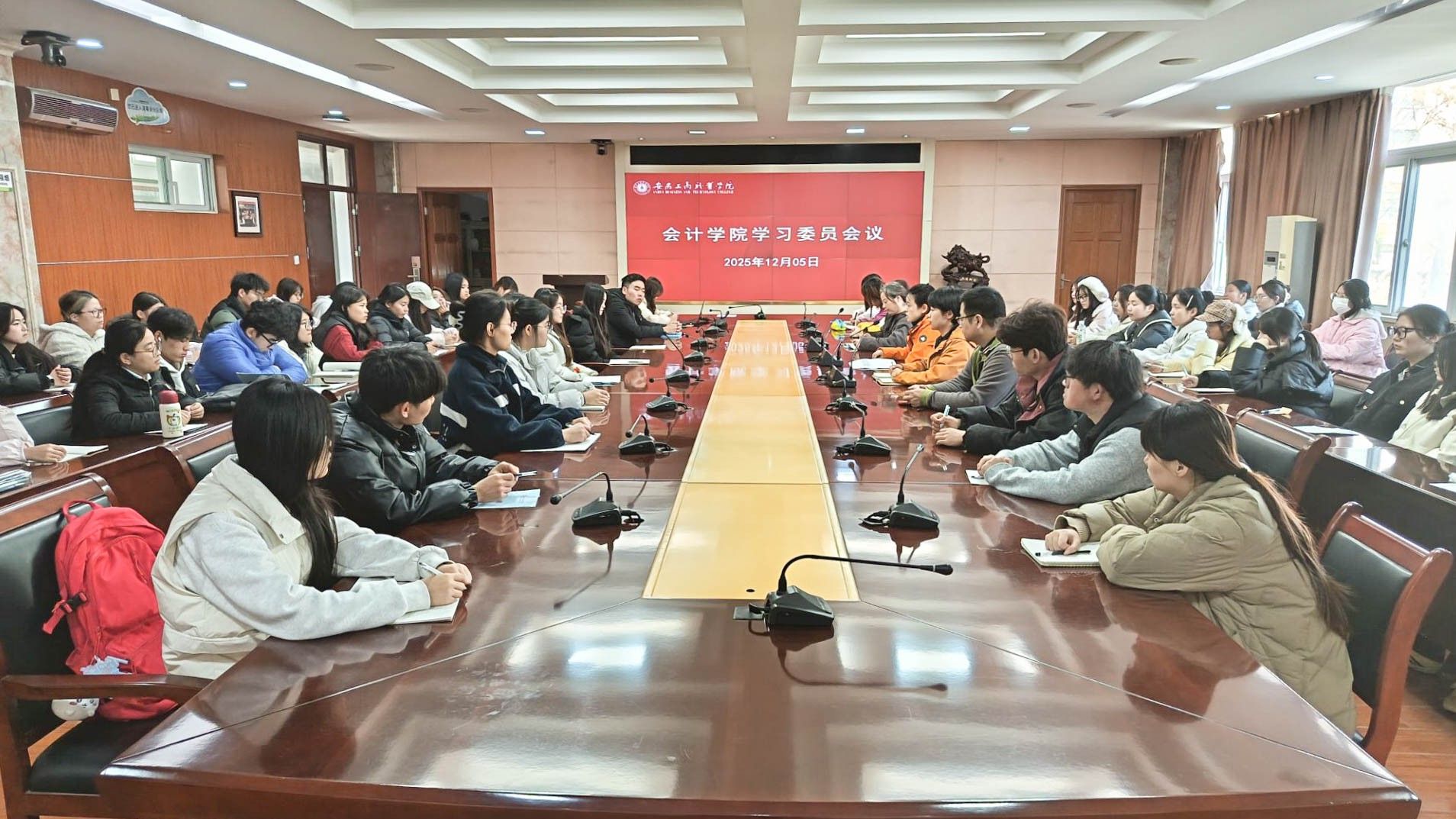 2025年12月5日中午,会计学院在明德楼会议室召开了全体学习委员工作会议。会计学院副院长费玄淑、教务科全体教师以及全院在校班级学习委员参加了会议。