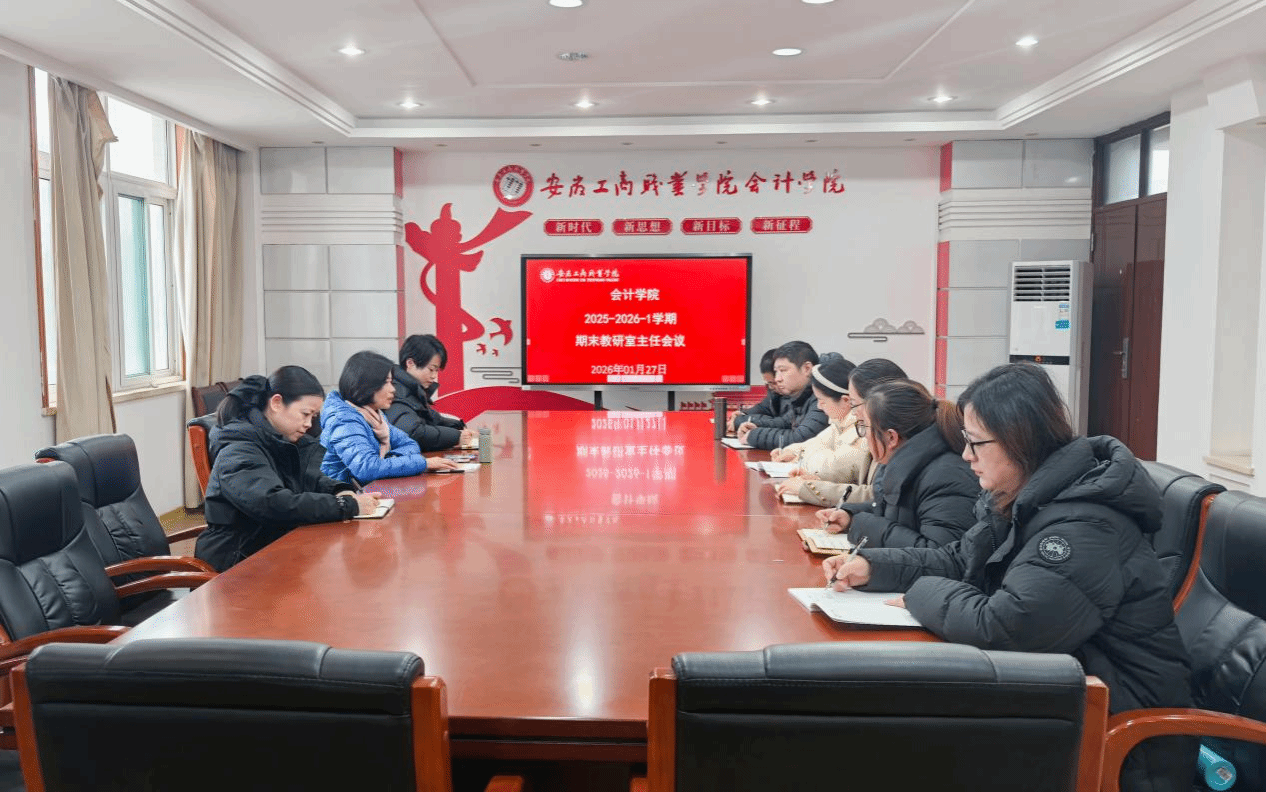 2026年1月27日上午,会计学院召开期末教研室主任会议。会计学院院长张颖,副院长费玄淑、教务科长杨梅及各教研室主任出席了本次会议。