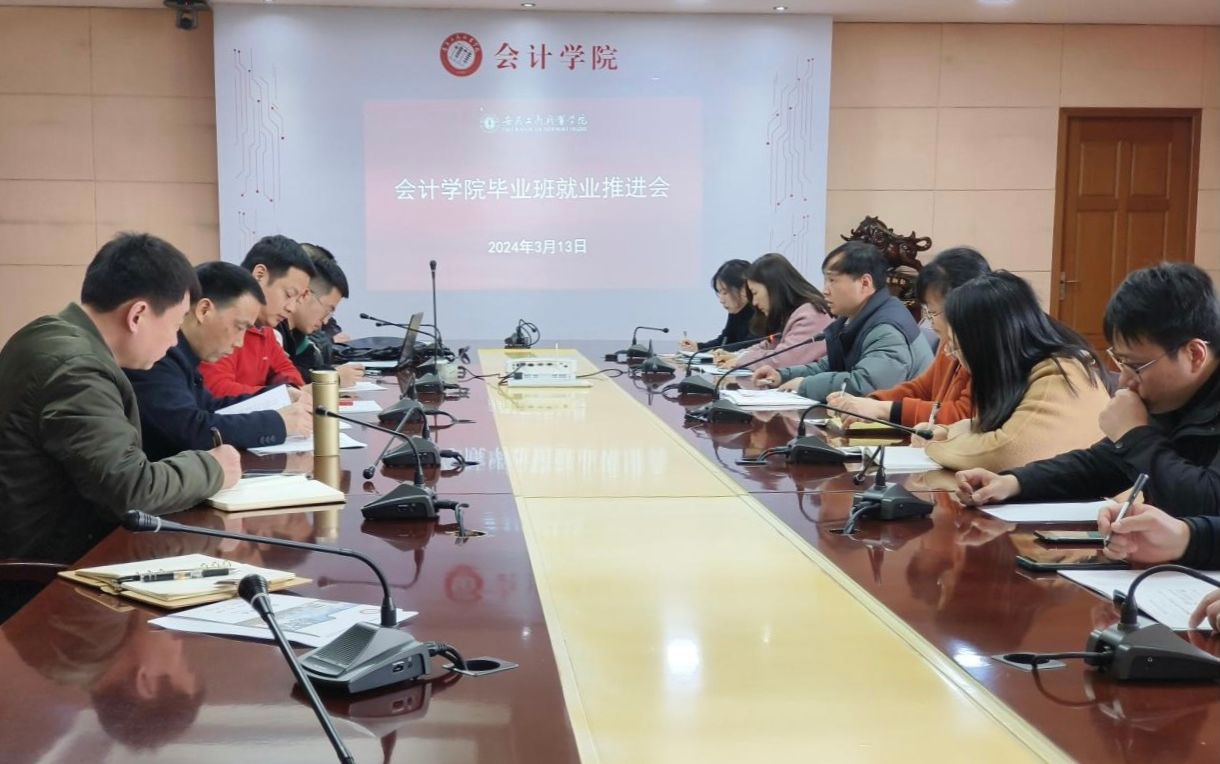 为进一步做好2024届毕业生就业工作,落实安徽省教育厅2024届全省普通高校毕业生就业工作培训暨调度视频会议精神,3月13日,会计学院在明德楼二楼会议室召开2024届毕业班就业推进会,会计学院党总支书记赵艳、副书记李峰及2024届毕业班辅导员参会。