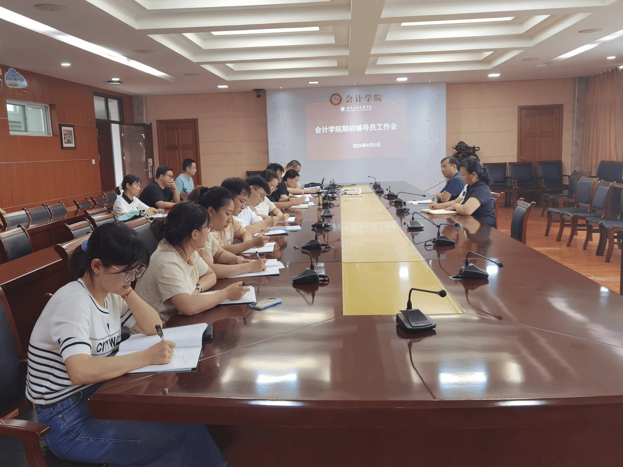 为了稳步推进新学期学生工作,进一步提升辅导员业务水平,做好新学期学生管理工作。9月5日下午,会计学院在明德楼二楼二号会议室召开期初辅导员工作会议。会计学院党总支书记赵艳出席会议,全体专兼职辅导员参加会议。学院党总支副书记李峰主持会议。
