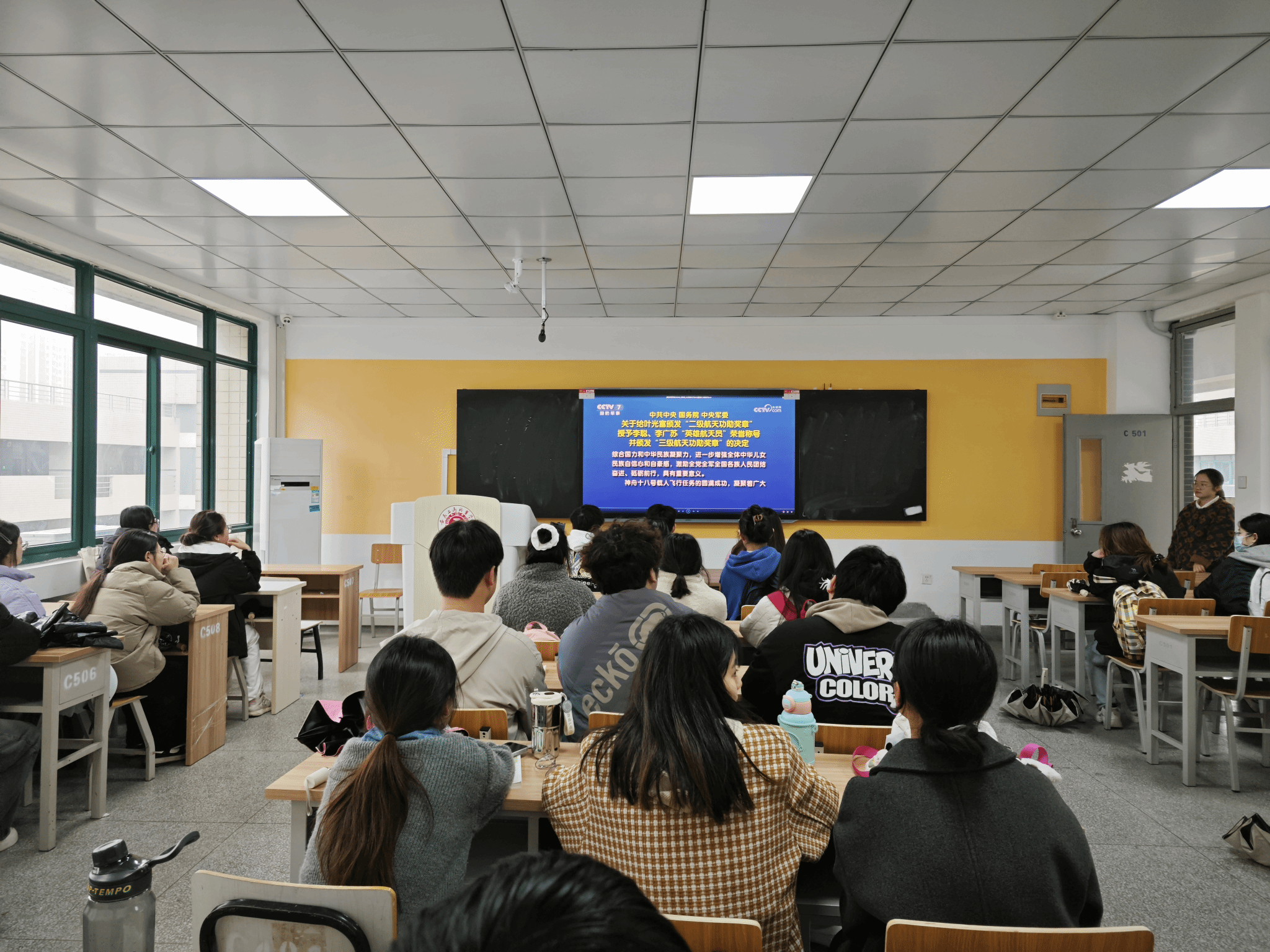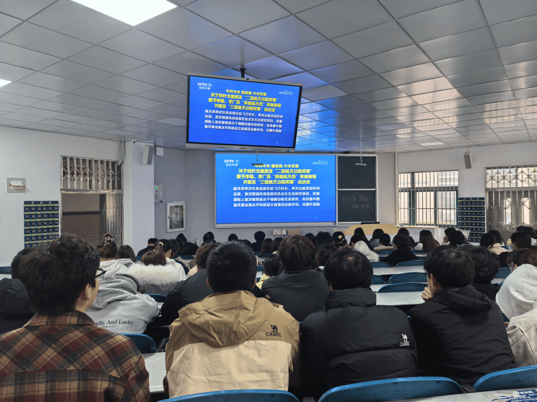 活动期间,各班级通过集中观看与自主观看相结合的方式,深入了解三位航天员的成长历程、训练过程和飞天故事。叶光富、李聪、李广苏三位航天员在飞行任务中展现出卓越的专业素养、奉献精神和坚韧意志,为广大青年学子树立了榜样。