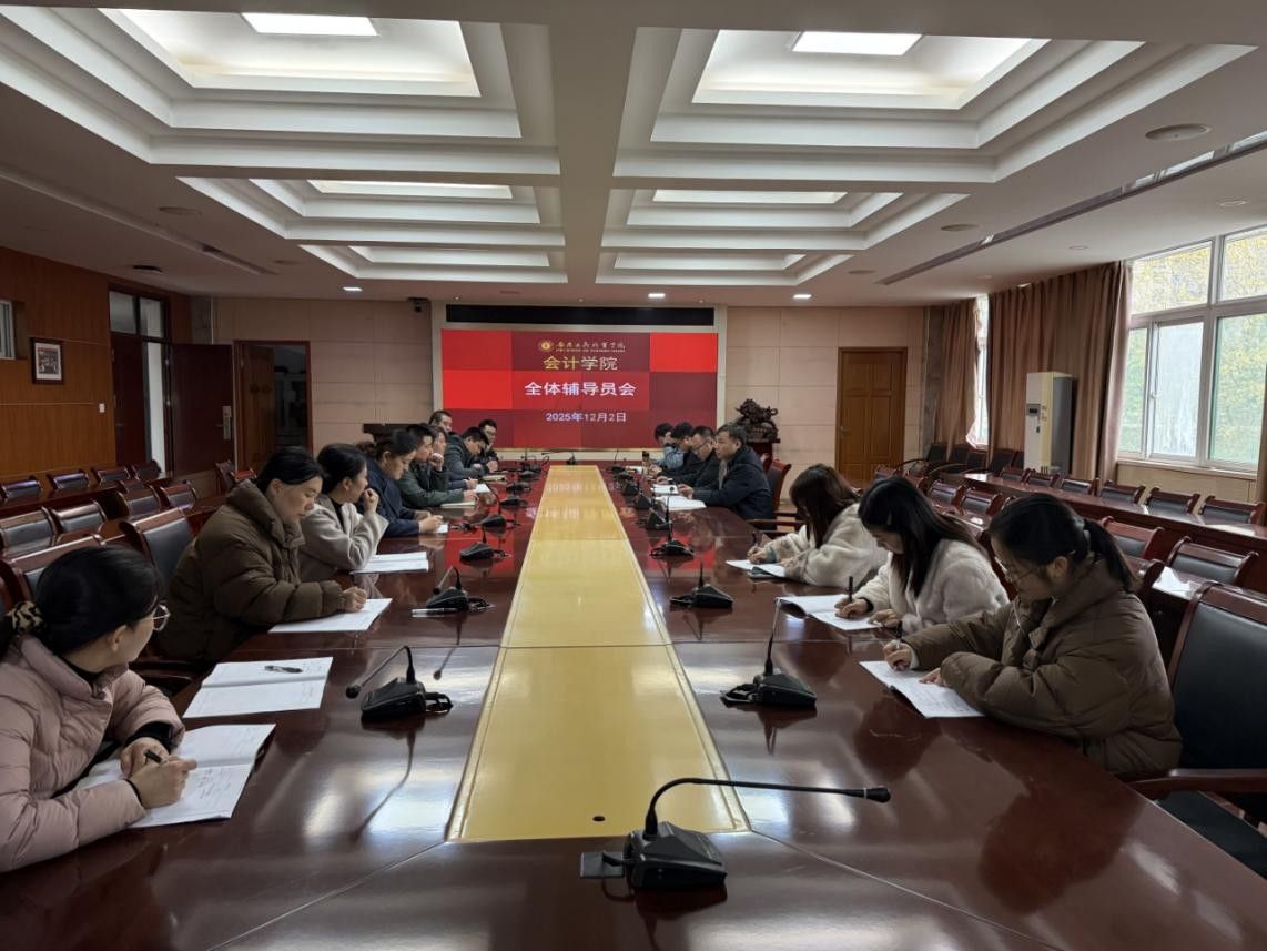 12月2日,会计学院召开辅导员工作会议。学院党总支副书记李峰主持会议,全体专兼职辅导员及学生科工作人员参加会议。
