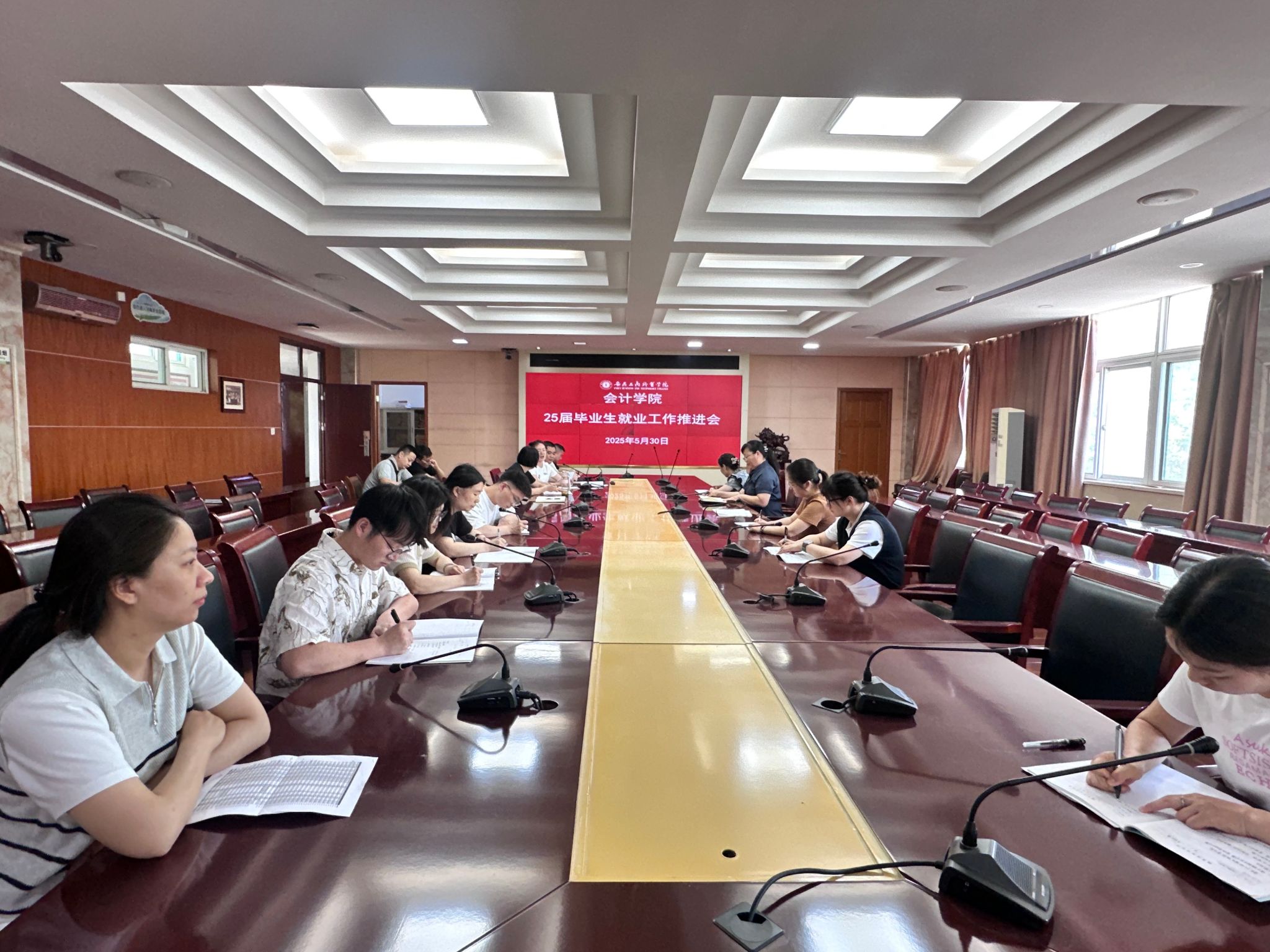 5月30日,会计学院于明德楼二楼二号会议室召开2025届毕业生就业工作推进会。学院党总支书记赵艳、毕业班全体辅导员参加会议,学院党总支副书记李峰主持会议。