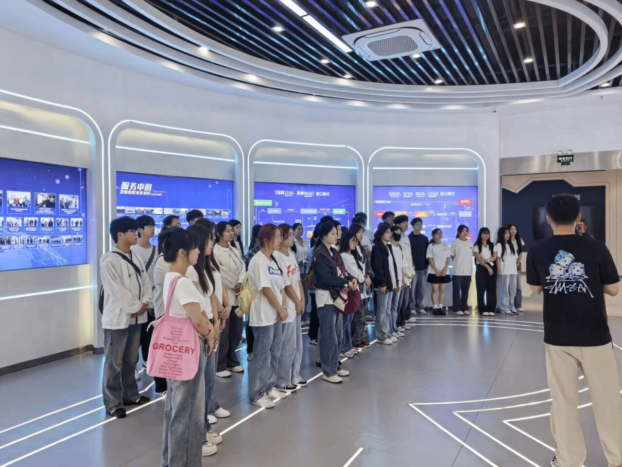 在产业园现代化展厅,讲解员依托电子屏等载体,系统讲授跨境电商出口模式(如“9710跨境电商直接出口”“9810跨境电商出口海外仓”)的税务合规要点,内容涵盖增值税免税备案流程、出口退税单证数字化管理规范、汇率波动对税务成本的影响机制及大数据风控系统应用逻辑。学生通过观摩业务流程动态演示、记录政策核心条款,将课堂理论与企业实操场景有效衔接。
