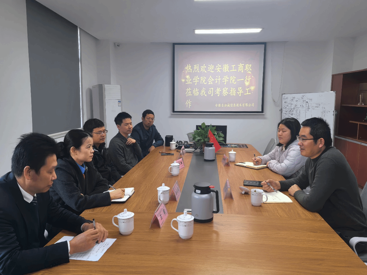 为深入贯彻落实国家关于深化产教融合、促进高质量就业的决策部署,推动专业建设与行业发展需求精准对接,切实拓宽毕业生就业渠道。1月16日,会计学院副院长费玄淑、专业教师团队汤长胜、王斌、谷小城、吴志明等一行专程前往安徽省拓诚信息技术有限公司,开展“访企拓岗”专项调研交流活动。此次活动聚焦三大核心任务,一是实地了解企业运营模式与用人需求,精准对接实习就业岗位资源;二是与企业管理及业务团队深度座谈,共同研讨专业人才培养体系优化及校企协同育人机制构建方案;三是走访我院在职毕业生,实地查看其在企业的工作状态、岗位适配情况与职业发展进度,了解企业对毕业生的评价与培养建议。