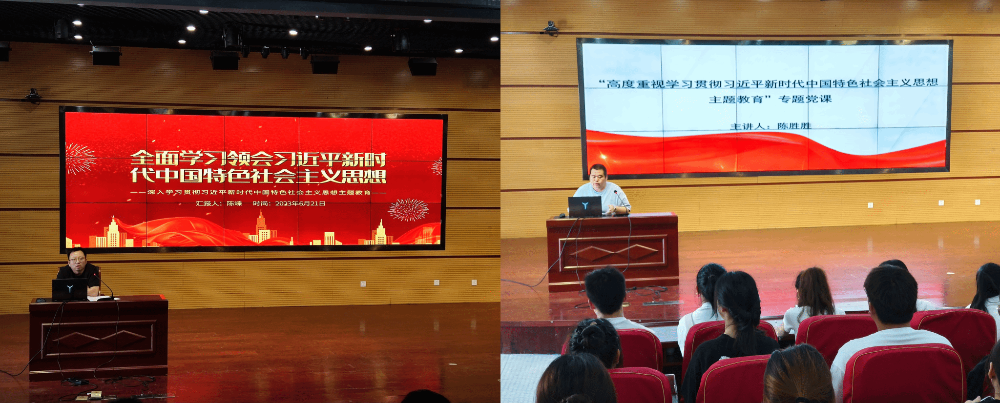 会议伊始,为全面深入学习贯彻习近平新时代中国特色社会主义思想,引导师生党员提高理论素养、坚定理想信念、升华觉悟境界、增强能力本领。学生第一党支部组织委员陈胜胜、学生第二党支部宣传兼纪检委员陈嵊分别以“高度重视学习贯彻习近平新时代中国特色社会主义思想主题教育”“全面学习领会习近平新时代中国特色社会主义思想”为题讲授了主题教育专题党课。并号召与会师生党员要坚持学思用贯通、知信行统一,把习近平新时代中国特色社会主义思想转化为坚定理想、锤炼党性和指导实践、推动工作的强大力量。