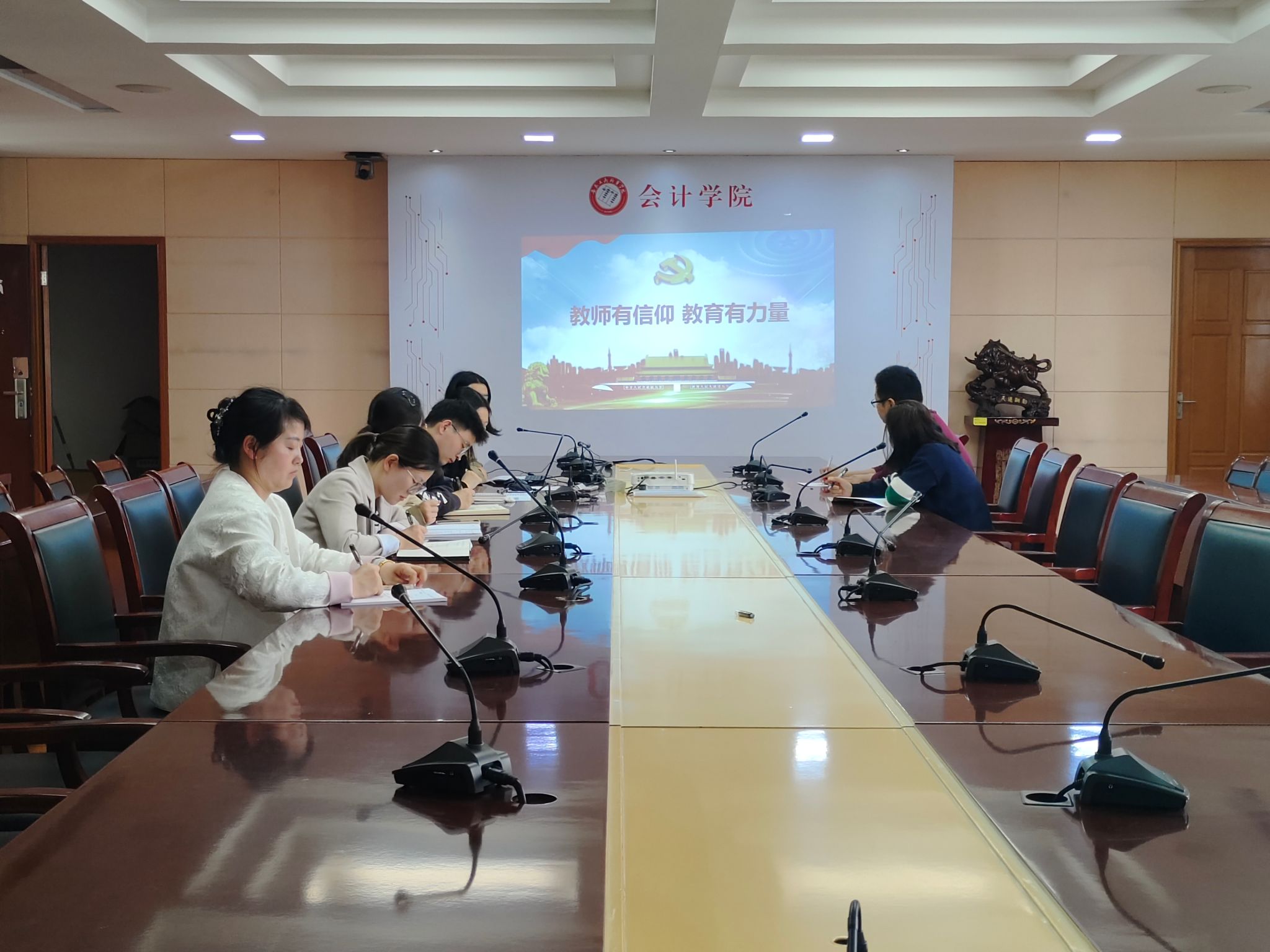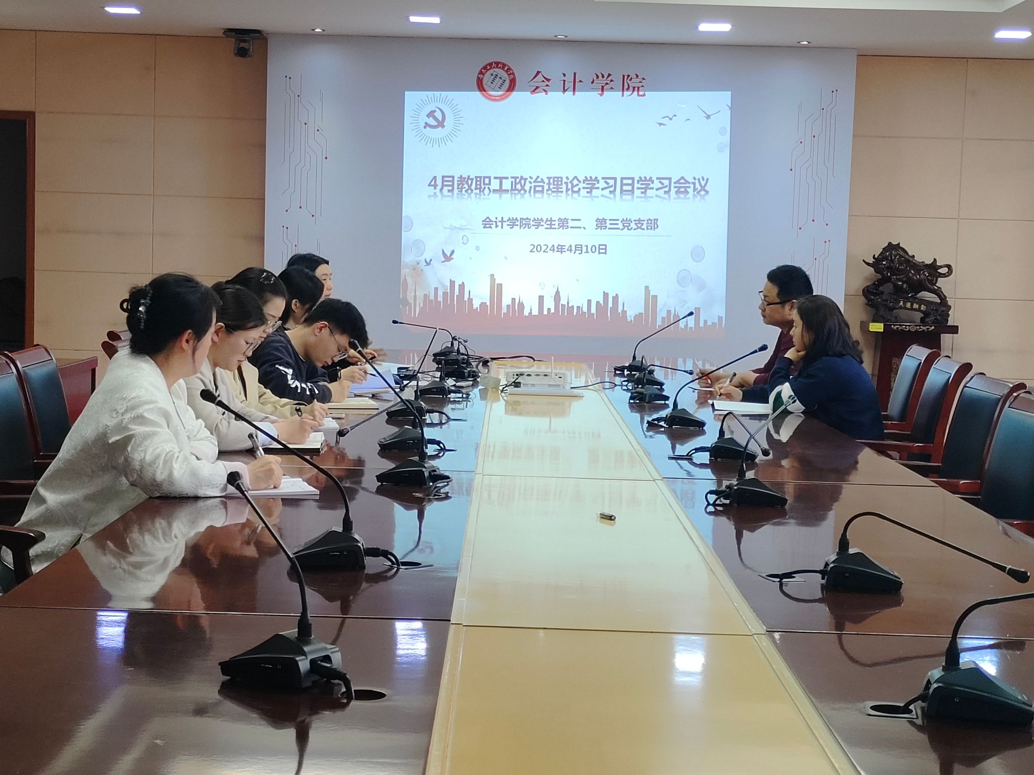 会计学院学生第二、第三党支部于4月10日中午在明德楼二号会议室开展教职工政治理论学习,学习会由学生第二党支部书记宋静娴主持,支部全体党员教师参加学习。
