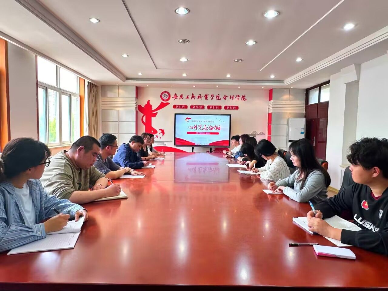 4月9日,会计学院学生第一党支部在明德楼二楼党建会议室开展主题党日活动,党支部书记余想花主持活动,全体师生党员参与学习。