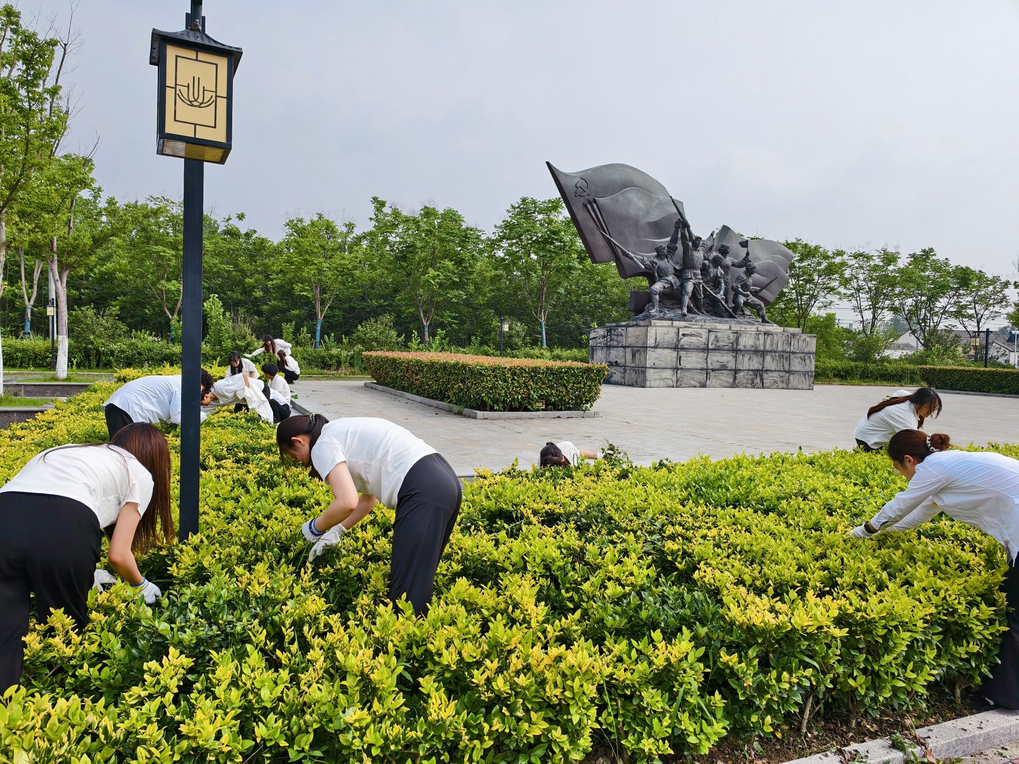 6月11日,会计学院党总支组织学生党支部先锋志愿队走进合肥党史馆,开展“拔草护绿勇担使命,先锋行动共筑新风”志愿服务活动。36名学生党员及入党积极分子,在党史馆周边以劳动为笔、汗水为墨描绘出一幅青春奉献的红色画卷,用实际行动诠释新时代青年党员的责任担当。