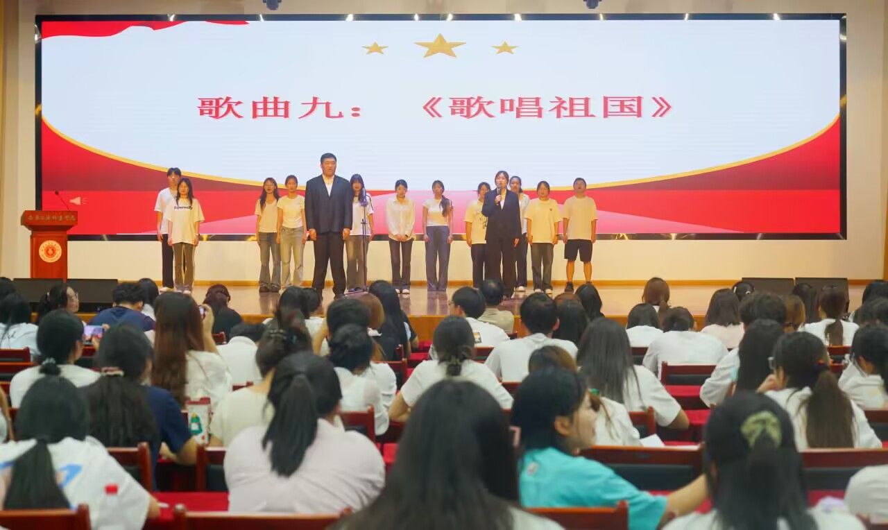 活动以“青春与时代的对话”为切入点,主持人王磊、洪宇带领学员从“红船启航”的历史原点延伸至“巨轮远航” 的复兴征程,通过《我和我的祖国》《党啊,我亲爱的母亲》等经典红歌传递爱国爱党情怀,更以《少年中国说》诗朗诵、《信仰的光芒》合唱等形式,展现新时代青年的责任担当。