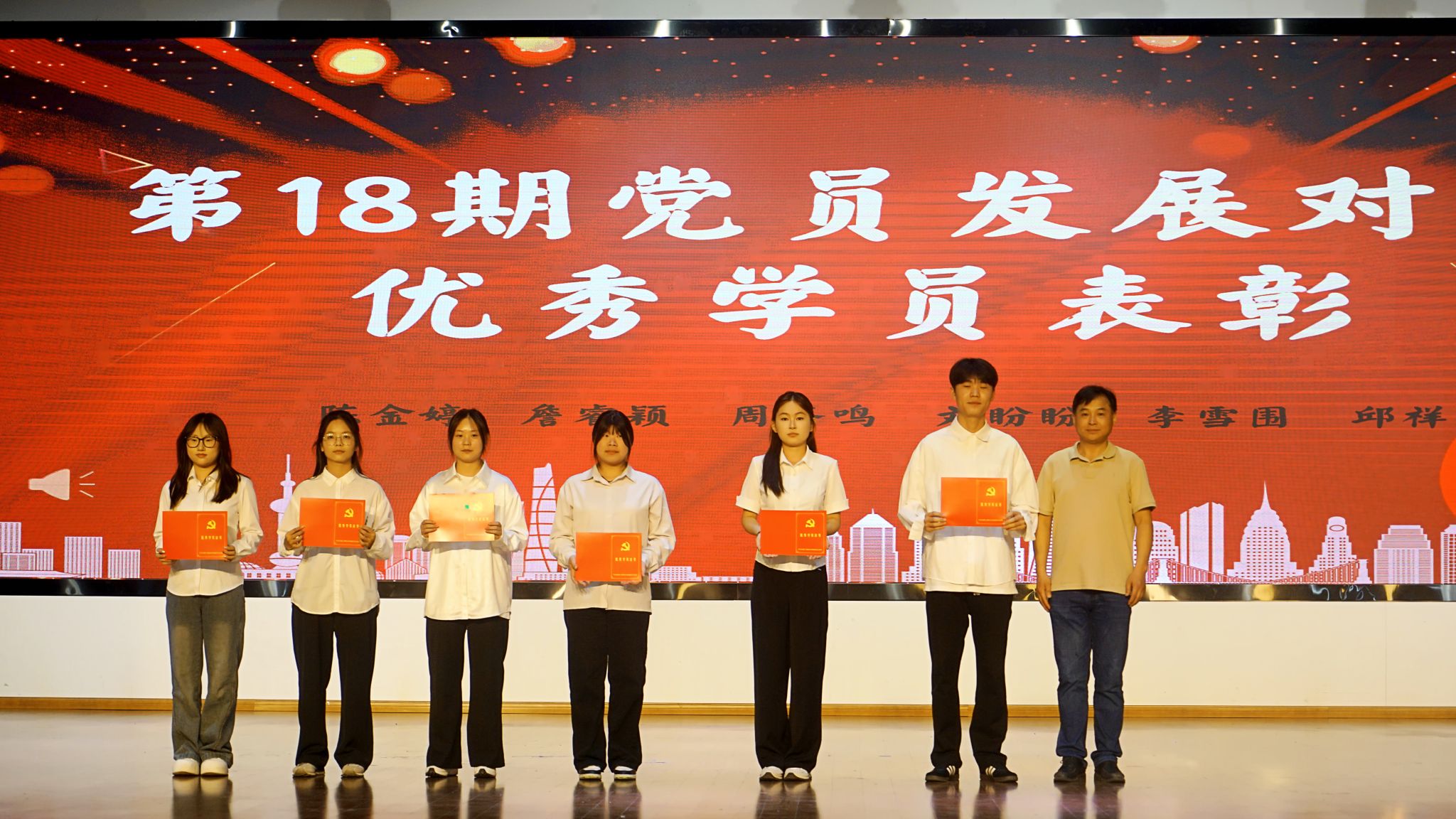 在 “成长・薪火相传” 环节,入党积极分子代表王磊、党员发展对象代表詹睿颖、学生党员代表周润依次登台分享。他们结合自身经历,从理论学习的沉淀、社会实践的磨砺,到服务师生的点滴,娓娓道来入党道路上的成长故事与深刻感悟,生动展现新时代青年党员的奋斗风采。真挚动人的发言,引发全场强烈共鸣。分享结束后,学院对“入党积极分子优秀学员”及“党员发展对象优秀学员”进行表彰,颁发荣誉证书,树立起身边的学习榜样,激励更多同学奋勇争先。