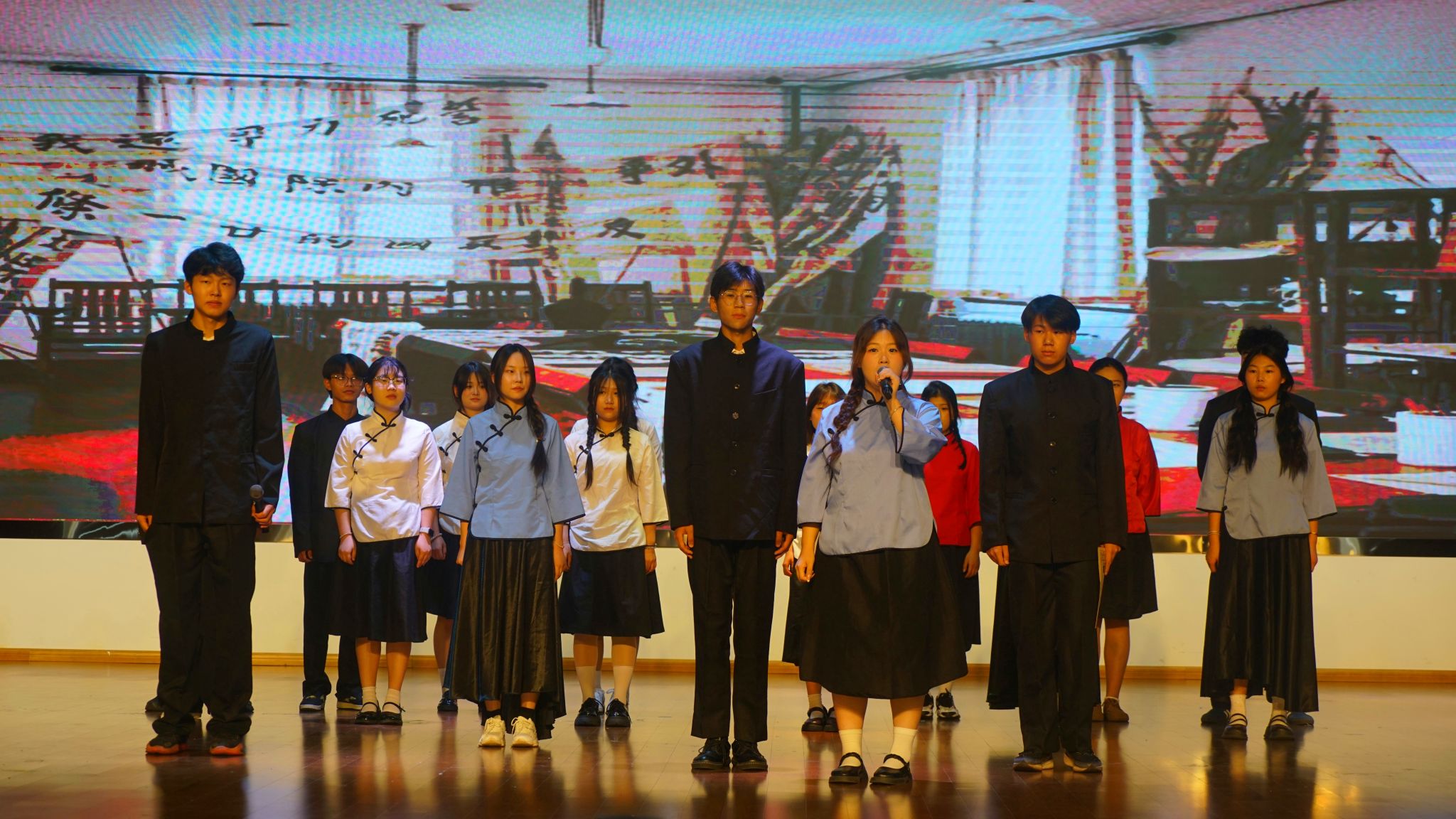 “绽放・青春华章” 环节将活动推向高潮。非遗节目《鼓跃龙旋》以震撼的传统鼓乐奏响文化自信强音,展现中华优秀传统文化独特魅力;诗朗诵《复兴路上的青春告白》,朗诵者们用铿锵有力的誓言,抒发对党的无限热爱与对祖国的美好祝福;历史情景剧《觉醒年代》生动还原革命先辈奋斗历程,带领观众穿越时空,感悟先辈们的革命精神;光影影子戏《百年征程,建党伟业》以创新形式回溯党的光辉历程,创意十足、令人印象深刻。此外,舞蹈《我们都是追梦人》、合唱《明天会更好》、朗诵《读中国》等节目,也充分彰显青年学子朝气蓬勃、积极向上的精神风貌,以青春活力诠释对未来的无限憧憬。