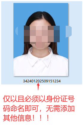2.如需提交电子照片入考生库,电子照片仅以且必须以身份证号码命名,无需添加其他信息,参考如下图: