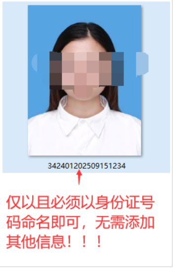 4. 如需提交电子照片入考生库,电子照片仅以且必须以身份证号码命名,无需添加其他信息,参考如下图: