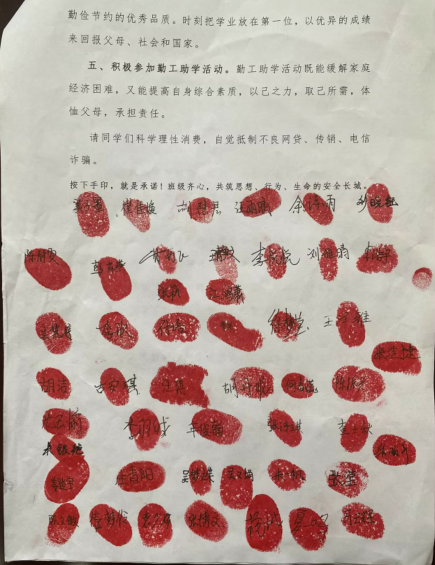 活动中,各位辅导员梳理了电信诈骗的几种类型,并结合具体的案例,与学生分享了在电信诈骗实施中常用的手段、学生被骗的原因以及如何有效杜绝被骗的途径,通过解读相关法律法规,引导学生筑牢守法遵规意识,不做兼职刷单等违法违纪行为,全部签订反诈安全承诺书,确保反诈防骗宣传教育“全覆盖、无盲区”。