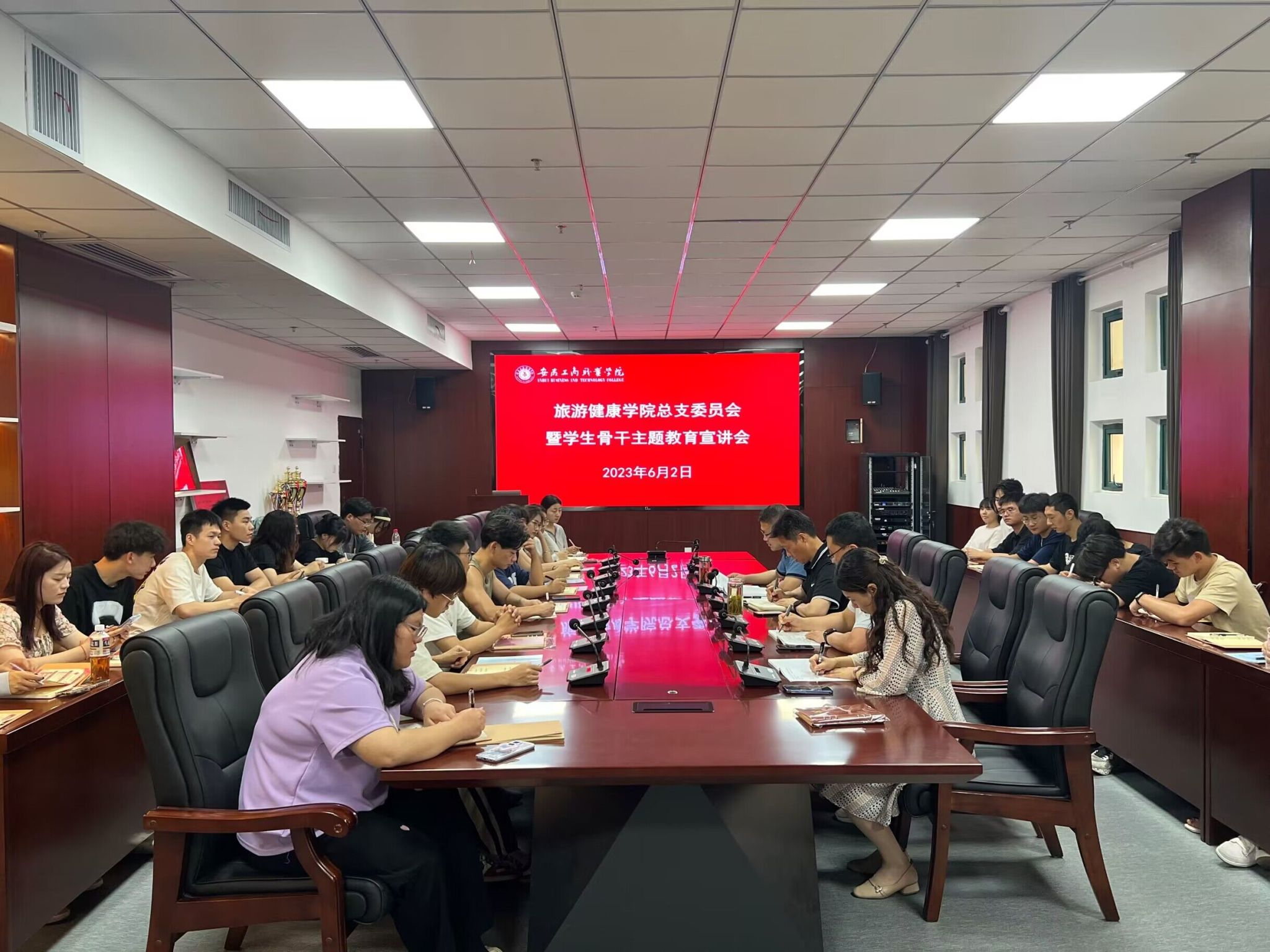 为深入开展学习贯彻习近平新时代中国特色社会主义思想主题教育,6月2日中午,旅游健康学院党总支召开总支委员会暨学生骨干主题教育宣讲会,会议由旅游健康学院党总支书记杨锐主持,总支全体委员及全院在校班级班长参加会议。