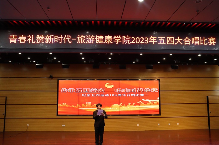 为深入学习贯彻党的二十大精神,纪念五四运动104周年,5月4日晚上,旅游健康学院“青春礼赞新时代”五四大合唱比赛在双凤校区学术报告厅隆重举行。