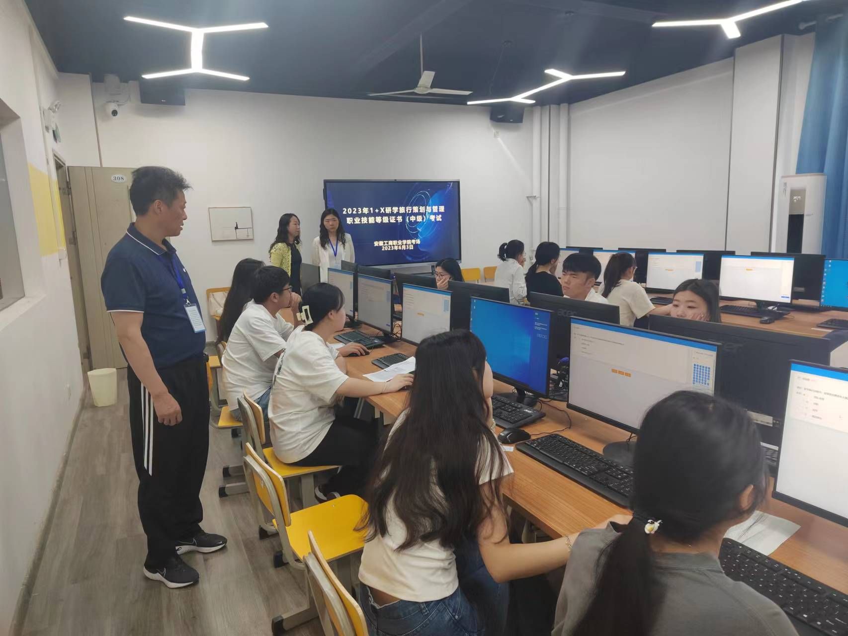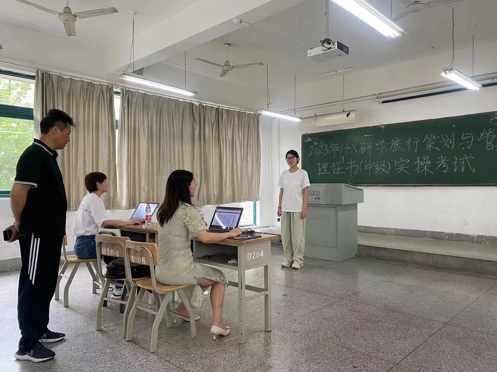6月3日、4日,全国“1+X”研学旅行策划与管理(EEPM)职业技能等级证书(中级)考试在我校顺利举行。考试科目分为理论考试(机考)、实操考试(机考)以及实操考试(现场)三部分,分别在敏行楼机房实训室和教学楼A栋一楼教室进行,共有156名学生报名参加。两天的考试组织有序、规范标准,旅游健康学院领导傅绪明、杨锐到场指导。