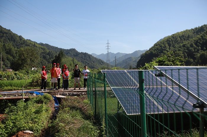 调研期间,山脚下的林田间,一大片太阳能电板吸引了团队成员的目光,据汪书记介绍,这是国家电网在当地实施的光伏发电项目,利用当地太阳能资源丰富的有利条件,推动绿色发展和乡村振兴有机结合,具有显著的产业带动作用和社会示范效应,每年可以为当地增收数十万元,对于促进集体经济发展,改善人居环境具有重要作用。