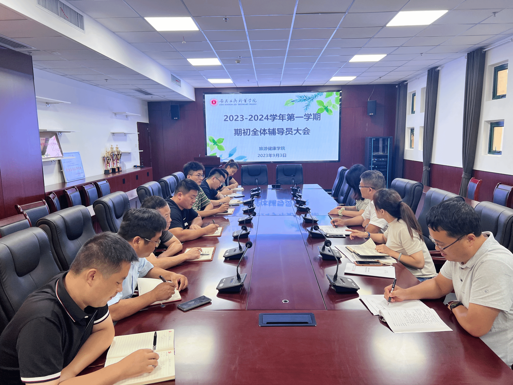 9月3日中午,旅游健康学院在学院会议室召开新学期第一次全体辅导员大会,会议由旅游健康学院党总支书记杨锐主持,全体专兼职辅导员参加。