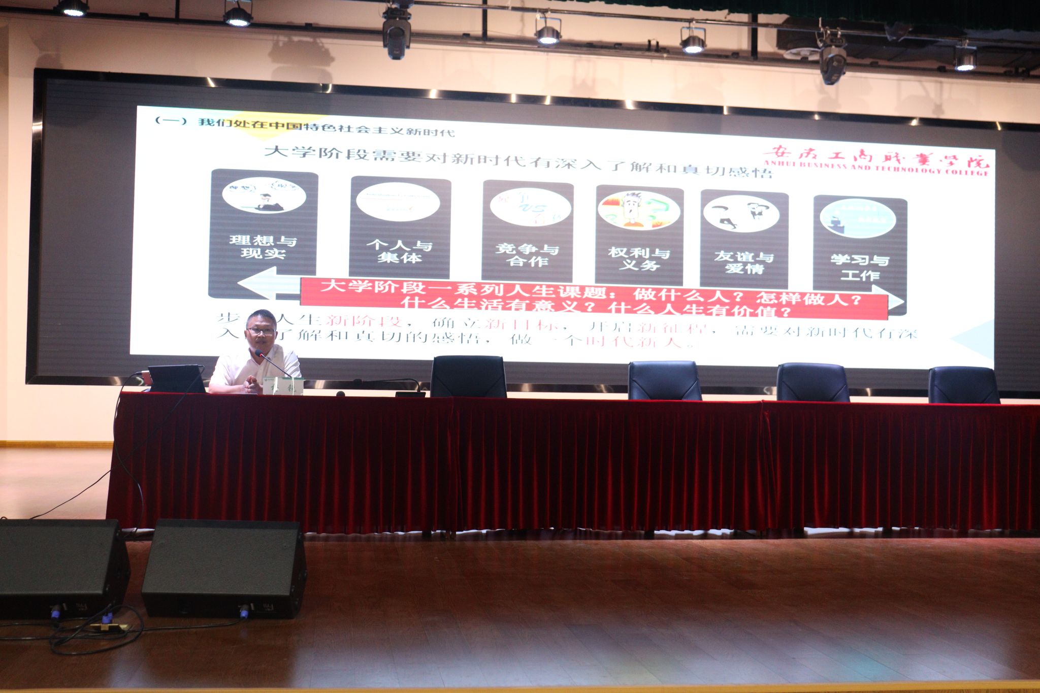 旅游健康学院党总支书记杨锐以《争做堪当民族复兴大任的时代新人》为题,给2023级新生们上第一堂理想信念教育课。他从我们处在中国特色社会主义新时代、新时代呼唤担当民族复兴大任的时代新人等方面详细分析了我们所处的时代背景,阐述了什么是理想信念,如何成为担当民族复兴大任的时代新人。希望旅游健康学院的同学能乘新时代春风,在祖国的万里长空放飞青春梦想,以社会主义建设者和接班人的使命担当,为全面建成社会主义现代化强国而努力奋斗,让中华民族伟大复兴在我们的奋斗中梦想成真!